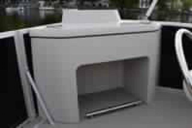 Fiberglass helm console with integrated cooler Molded dash panel with black pearl woodgrain inserts and lighted switches Sport tilt steering mechanism 160-watt AM/FM/Bluetooth Jensen Stereo with integrated auxiliary input (1/8") in console 4 waterproof speakers ( 6 ½" ) Electric horn 12V outlet Push on/off console courtesy light LED lighting under driver console Quick release smoked windscreen