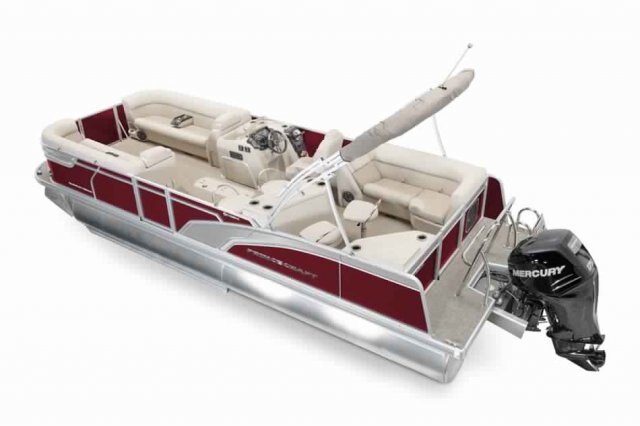 5052-H36 marine grade aluminum alloy NMMA & Transport Canada certified 2 ½" heavy-duty extruded Z-aluminum cross channels 1 1/4" anodized aluminum rails Sealed pontoon bulkheads with top mounted air plug (25") V-shaped aluminum engine pod Pressure-treated wood deck covered with marine grade carpet Extruded aluminum full-length pontoon keels Extruded aluminum full-length pontoon skirting Stern molded corners Walk-thru bow gate with lift and lock hinges Walk-thru rear gate with lift and lock hinges Port side gate with lift and lock hinges Rear swim platform Stainless steel bow eye Lifting eyes 4- 6" chromed deck cleats