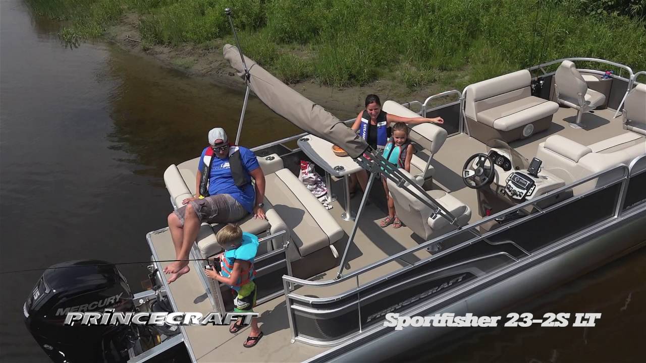 Affordability meets versatility in this Sportfisher 23-2S pontoon. Built for your fishing as well as your leisure needs, this product has it all: rear padded sundeck, swim platform, a radio, chaise lounges, fishing options, and enough room for 11 people. Truly the best of both worlds! This 23’-6’’ long pontoon boat can accommodate an engine ranging from 40 to 115 HP, even 175 HP with the Sport configuration.