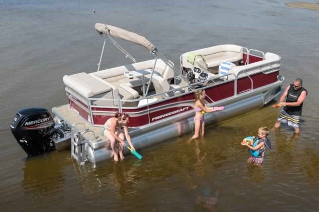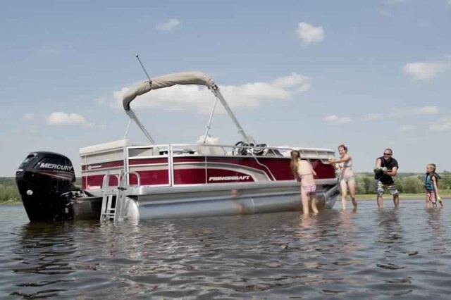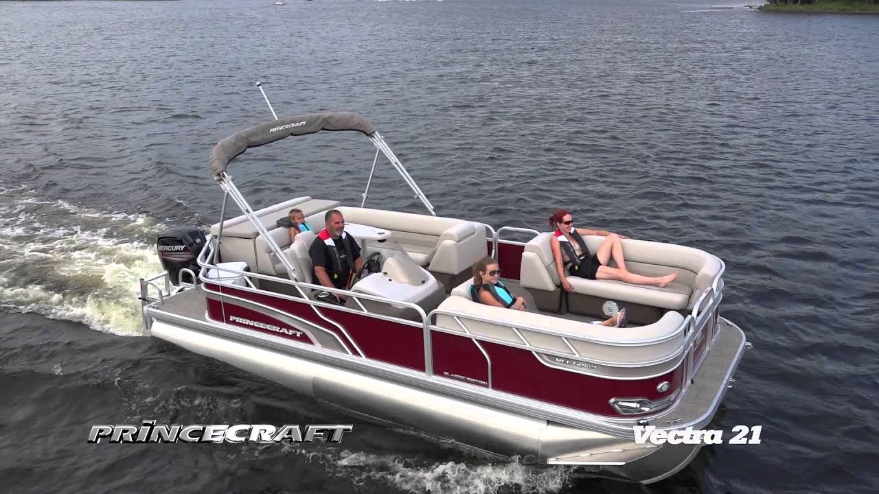 If you are looking for a top quality, affordable pontoon boat, with a lot of space to accommodate up to 10 people and that will let you practice all your favorite water sports, look no further than this Vectra 21. With chaise lounges, a sundeck, a radio, a 12 volt outlet, a swim platform, and much more, you will appreciate the simplicity and practicality of this. This 21’-6’’ pontoon boat can accommodate an engine ranging from 40 to 115 HP, even 150 HP with the Sport configuration.