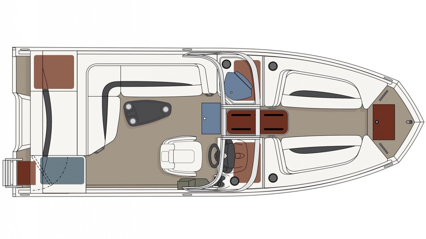 Walk-thru curved tempered glass windshield w/ door Twin console w/ steering system Port console with integrated entertainment center including ice chest and storage underneath Black Thermoformed Laser Wave dash panel with lighted switches SeaStar hydraulic steering system with tilt wheel No-FeedBack dual cable steering system Electric horn 160-watt AM/FM/Bluetooth Jensen Stereo with integrated auxiliary input (1/8") in console 4 waterproof speakers 12V outlet Switches with breaker system protection