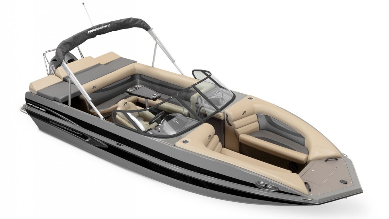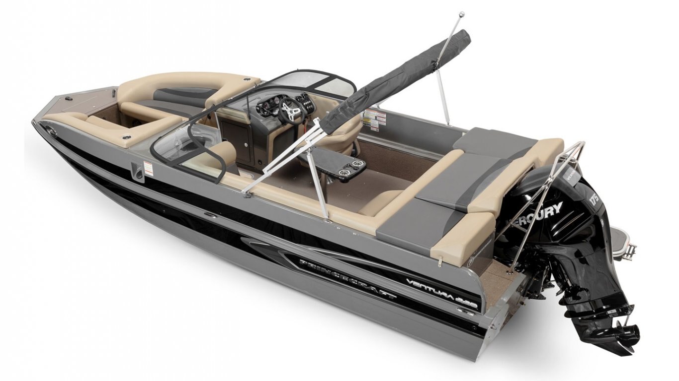 5052-H36 marine grade aluminum alloy NMMA & Transport Canada certified Pressure treated wood deck covered with marine grade carpet (20 oz) High gloss exterior High Solids urethane paint and decal package High performance deep-Vee reverse chine hull design Stainless steel bow eye 6 stainless steel cleats (6") Side panel rigging tubes (from stern to console and console to bow) Rear boarding access with gates Full-width rear padded sundeck Built-in floor cooler In-floor lockable ski storage compartment Anchor storage