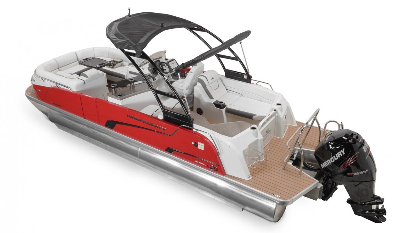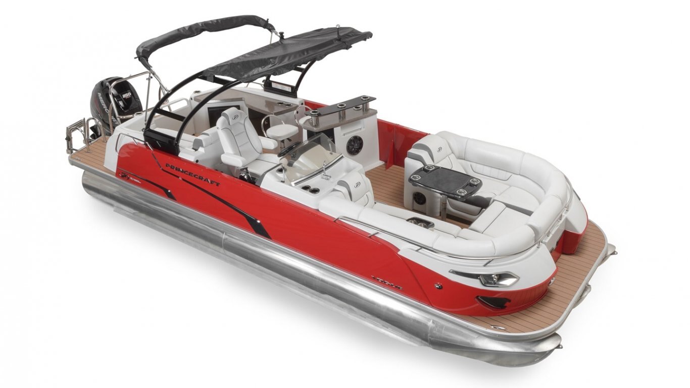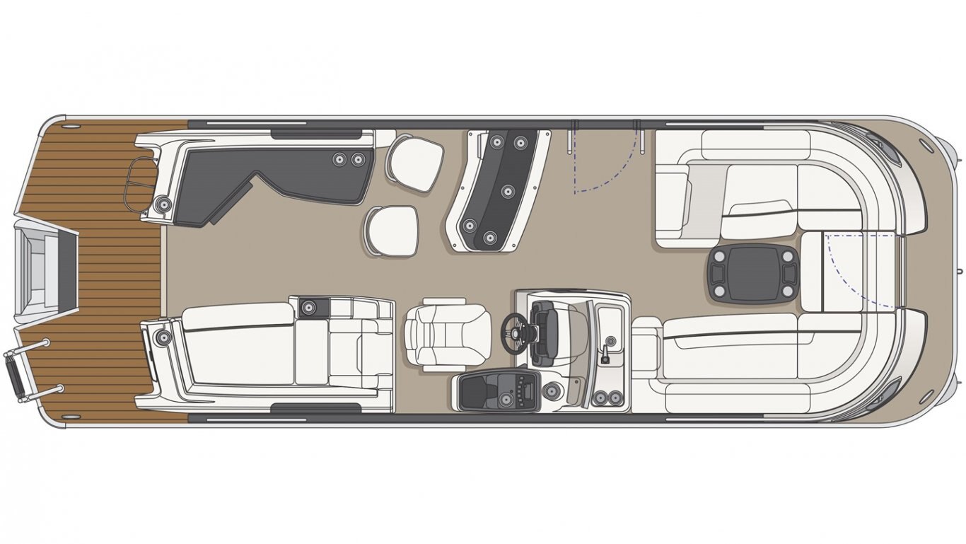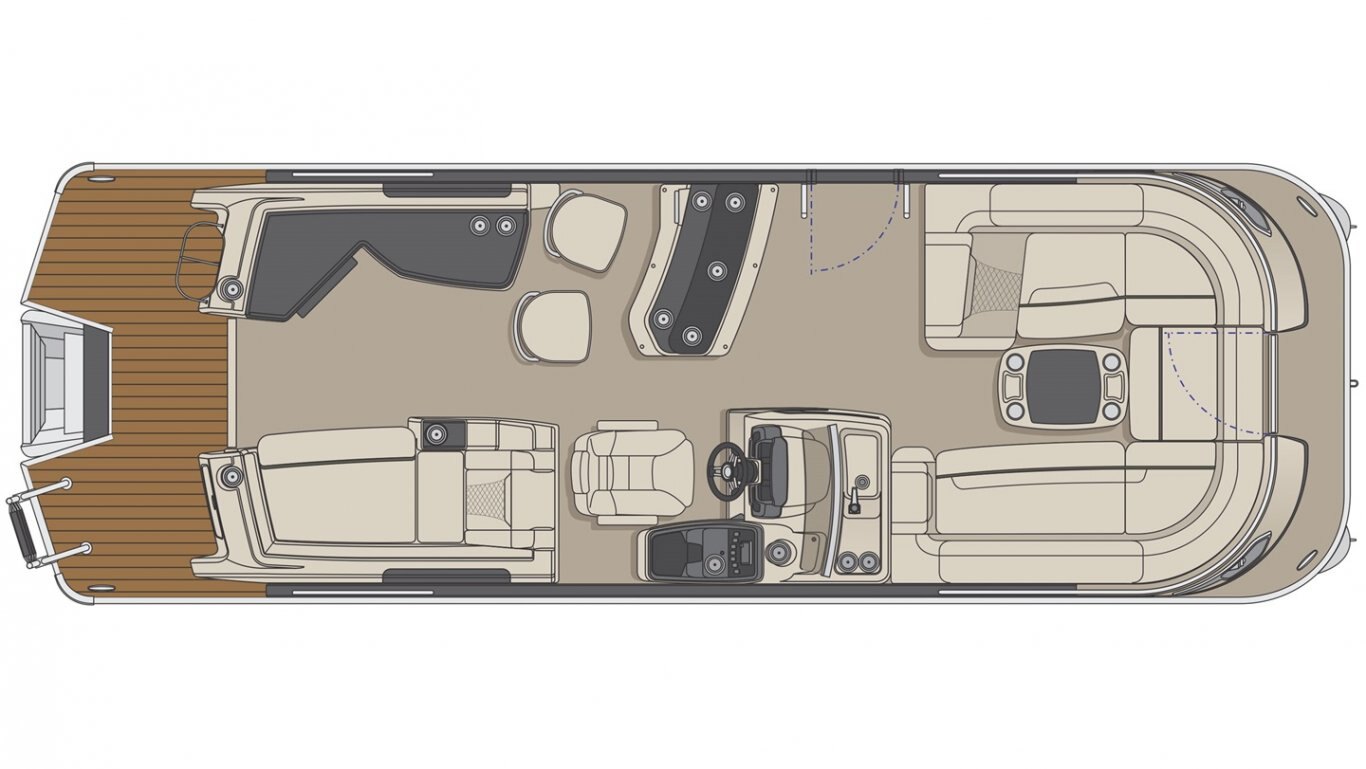 This 25’-11’’ pontoon features all the comfort and convenience you enjoy at home… and more. Aft bar section with corner module, cooler storage, 12 volt outlet, 2 adjustable stools, lots of storage, a galley with a sink and faucet, water tank (portable), ultra-plush upholstery, chaise lounges, radio, a swim platform and so much more. Have a party with up to 11 friends or enjoy your favorite water sports. Rig your pontoon with an engine up to 300 HP (with the optional Performance Configuration) and get ready for some serious fun!
