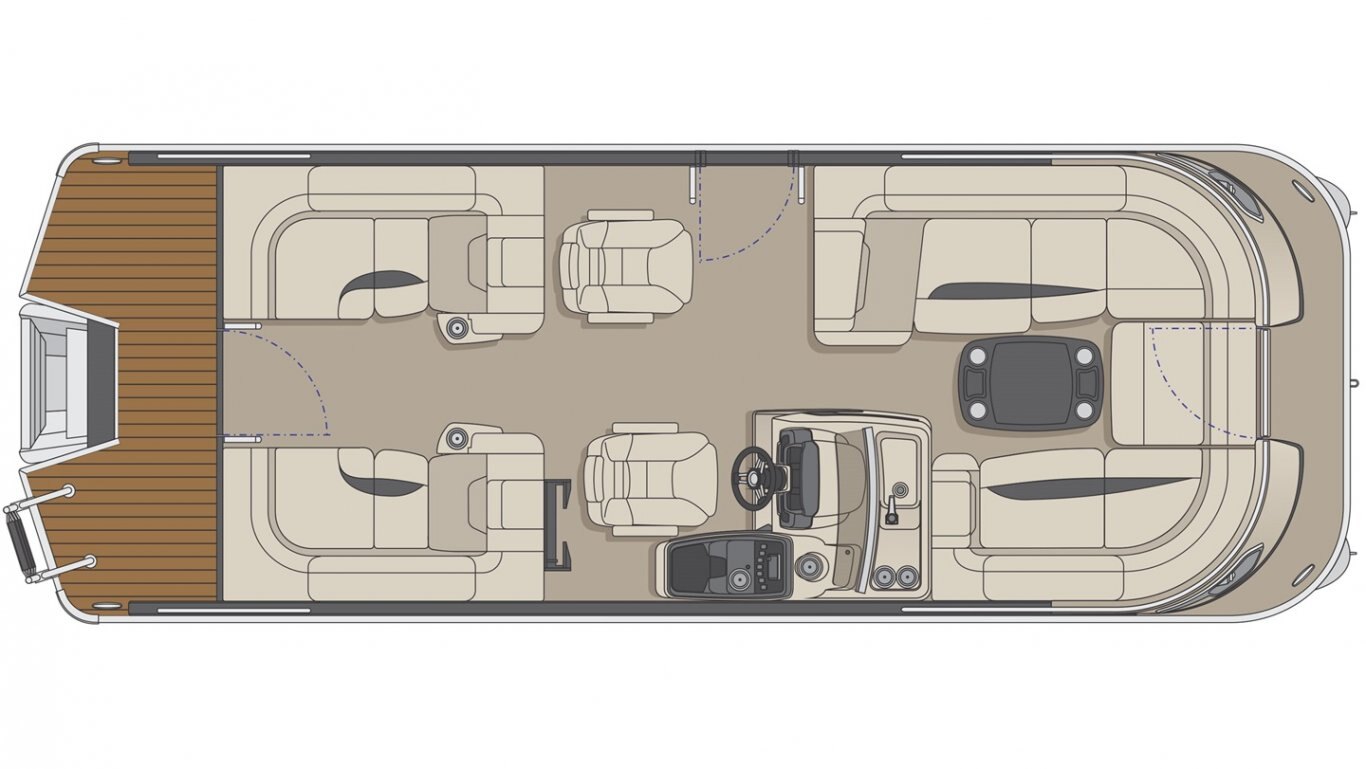 This 23’-11’’ pontoon features all the comfort and convenience you enjoy at home… and more. A galley with a sink and faucet, water tank (portable), rear swim platform, ultra-plush upholstery, chaise lounges, radio, and so much more. Have a party with up to 10 friends or enjoy your favorite water sports. Rig your pontoon with an engine up to 250 HP (with the optional Performance Configuration) and get ready for some serious fun!