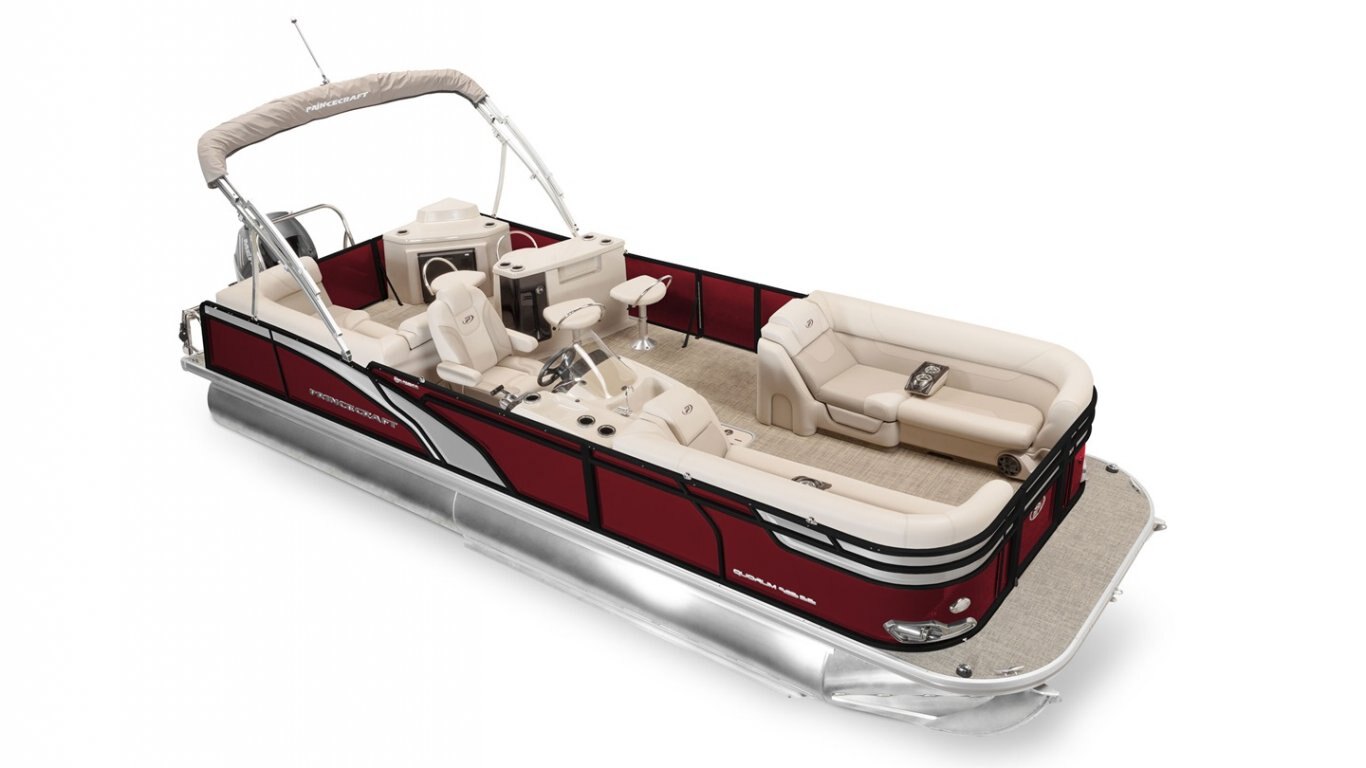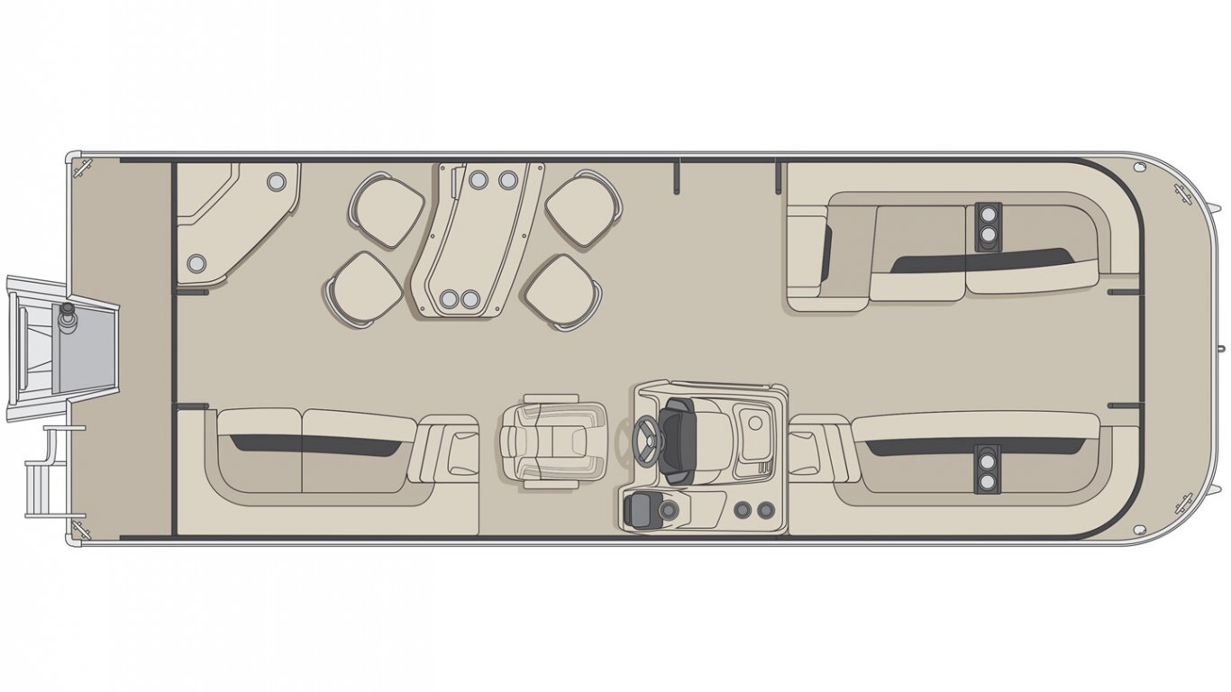 With the capacity to carry up to 12 people, you will love the styling and comfort of this 25’-8’’ Quorum 25 SE. While you can gear it with a 300 HP engine (with the optional Performance Configuration) to enjoy all your water sports, you can also rig this pontoon with a 60 HP engine, perfect for smaller lakes or to simply relax on the water. With such features as an aft bar section with corner module, adjustable bar stools, tons of storage, rear swim platform, 3 chaise lounges, and a lot more, you will most definitely not find anything comparable.
