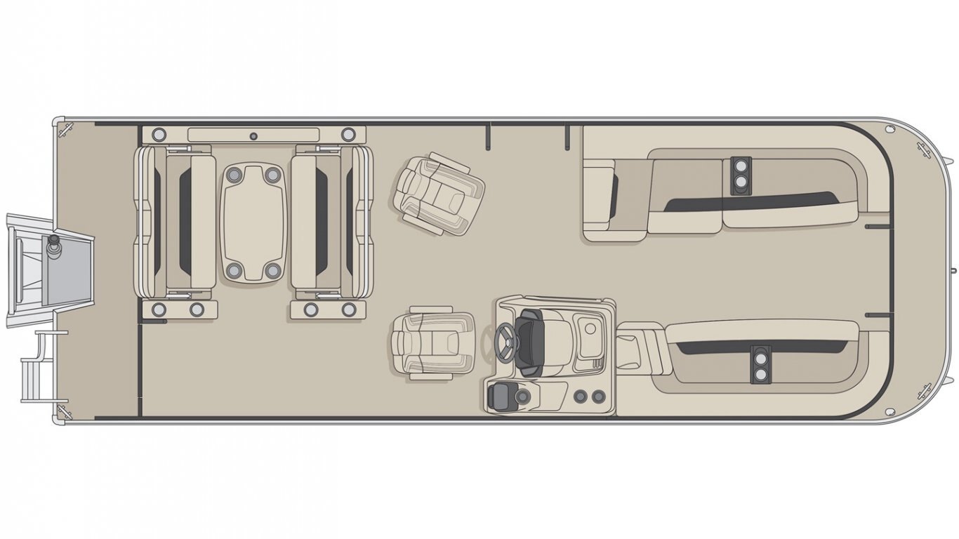 With the capacity to carry up to 13 people, you will love the styling and comfort of this 25’-8’’ Quorum 25 RL. While you can gear it with a 300 HP engine (with the optional Performance Configuration) to enjoy all your water sports, you can also rig this pontoon with a 60 HP engine, perfect for smaller lakes or to simply relax on the water. With such features as rear swim platform, a radio, and the RL design (2 seat modules with 3-position adjustable backrest, a large snack table, and storage under all the seating area), and a lot more, you will most definitely not find anything comparable.