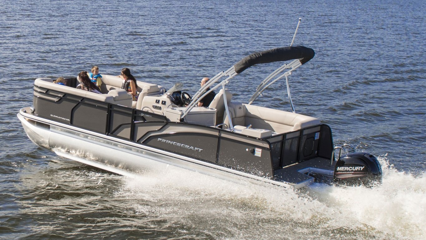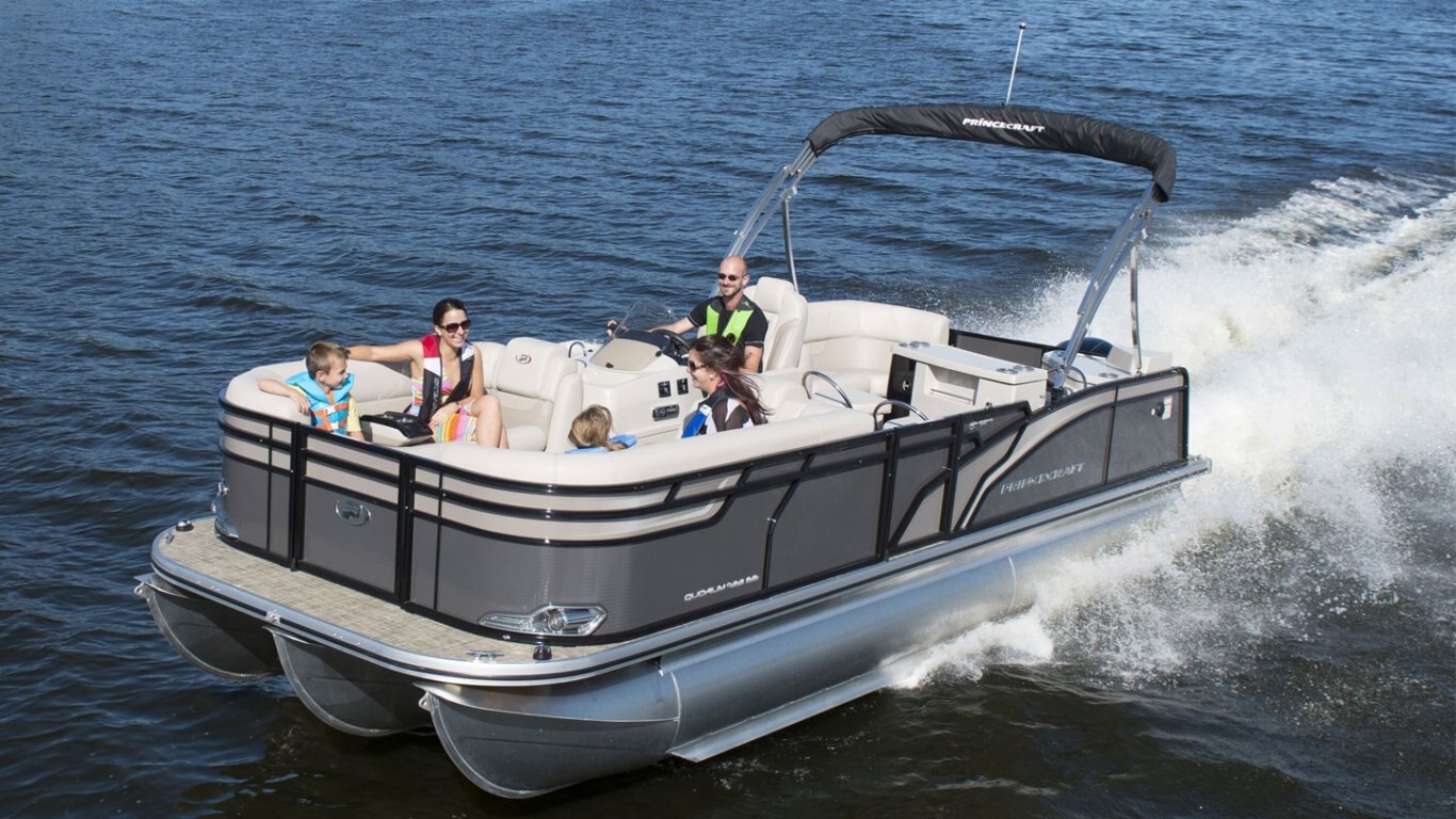 5052-H36 marine grade aluminum alloy NMMA & Transport Canada certified 2 ½" heavy-duty extruded Z-aluminum cross channels 1 1/4" anodized aluminum rails Sealed pontoon bulkheads with top mounted air plug (25") V-shaped aluminum engine pod Pressure-treated wood deck covered with marine grade carpet Extruded aluminum full-length pontoon keels Extruded aluminum full-length pontoon skirting Stern molded corners Walk-thru rear gate with lift and lock hinges Walk-thru bow gate with lift and lock hinges Port side gate with lift and lock hinges (24'') Rear swim platform Stainless steel bow eye 4- 6" chromed deck cleats