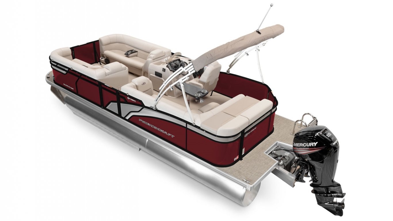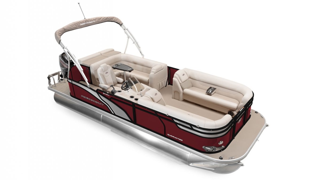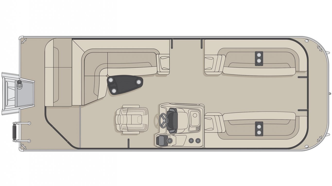 5052-H36 marine grade aluminum alloy NMMA & Transport Canada certified 2 ½" heavy-duty extruded Z-aluminum cross channels 1 1/4" anodized aluminum rails Sealed pontoon bulkheads with top mounted air plug (25") V-shaped aluminum engine pod Pressure-treated wood deck covered with marine grade carpet Extruded aluminum full-length pontoon keels Extruded aluminum full-length pontoon skirting Stern molded corners Rear padded sundeck Walk-thru rear gate with lift and lock hinges Walk-thru bow gate with lift and lock hinges Port side gate with lift and lock hinges (24'') Rear swim platform Stainless steel bow eye 4- 6" chromed deck cleats