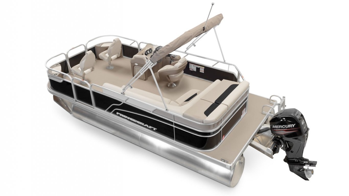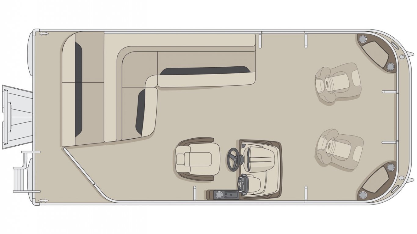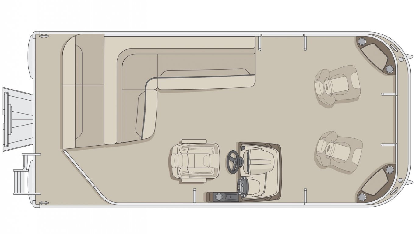 5052-H36 marine grade aluminum alloy NMMA & Transport Canada certified 2 ½" heavy-duty extruded Z-aluminum cross channels 1 1/4" anodized aluminum rails Sealed pontoon bulkheads with top mounted air plug (25") V-shaped aluminum engine pod Pressure-treated wood deck covered with marine grade carpet Extruded aluminum full-length pontoon keels Extruded aluminum full-length pontoon skirting Stern molded corners Rear padded sundeck Walk-thru rear gate with lift and lock hinges Walk-thru bow gate with lift and lock hinges Port side gate with lift and lock hinges (24'') Rear swim platform Stainless steel bow eye 2- 6" stainless steel deck cleats 2 stainless steel recessed cleats