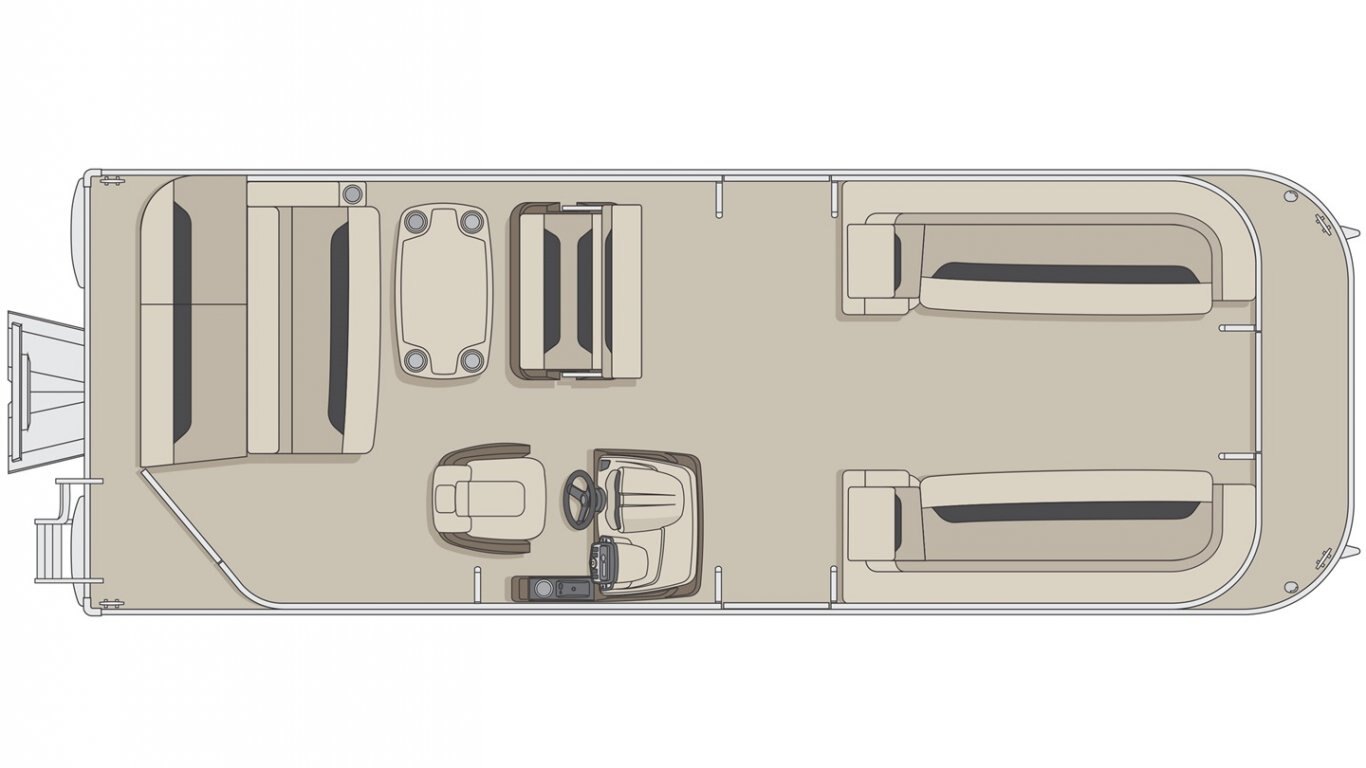 5052-H36 marine grade aluminum alloy NMMA & Transport Canada certified 2 ½" heavy-duty extruded Z-aluminum cross channels 1 1/4" anodized aluminum rails Sealed pontoon bulkheads with top mounted air plug (25") V-shaped aluminum engine pod Pressure-treated wood deck covered with marine grade carpet Extruded aluminum full-length pontoon keels Extruded aluminum full-length pontoon skirting Stern molded corners Rear padded sundeck Walk-thru rear gate with lift and lock hinges Walk-thru bow gate with lift and lock hinges Starboard side gate with lift and lock hinges (24'') Port side gate with lift and lock hinges (24'') Rear swim platform Stainless steel bow eye 4- 6" chromed deck cleats