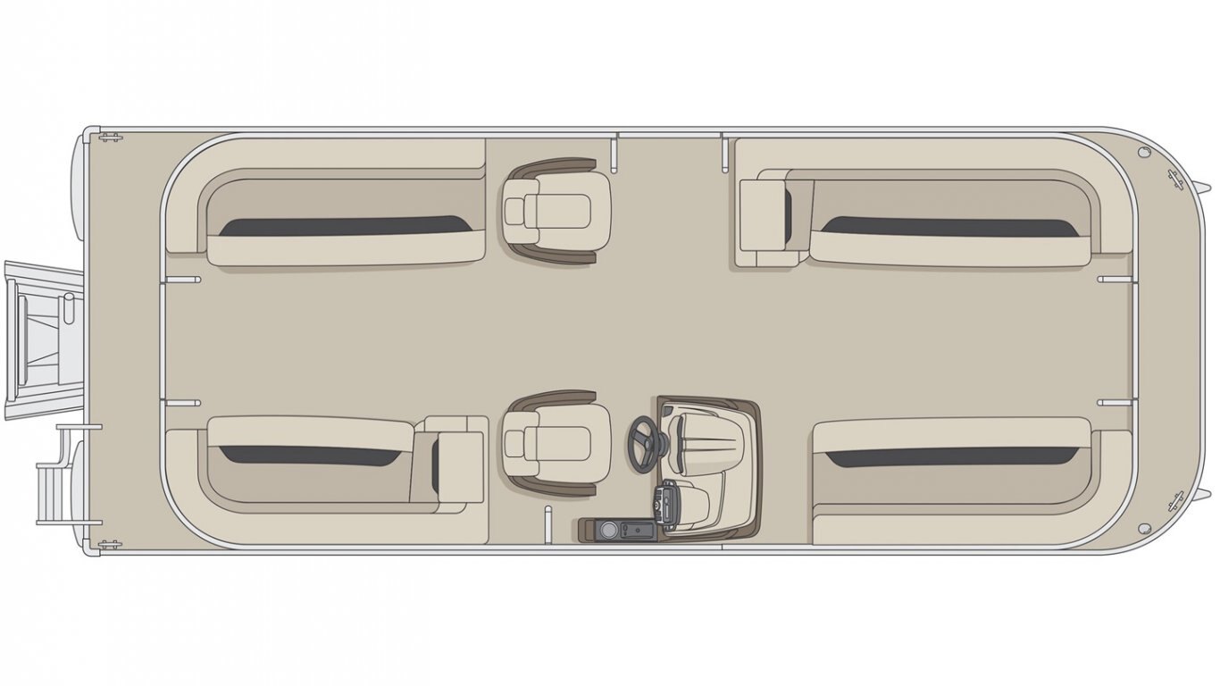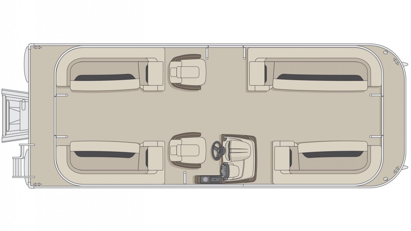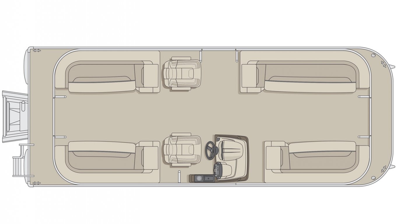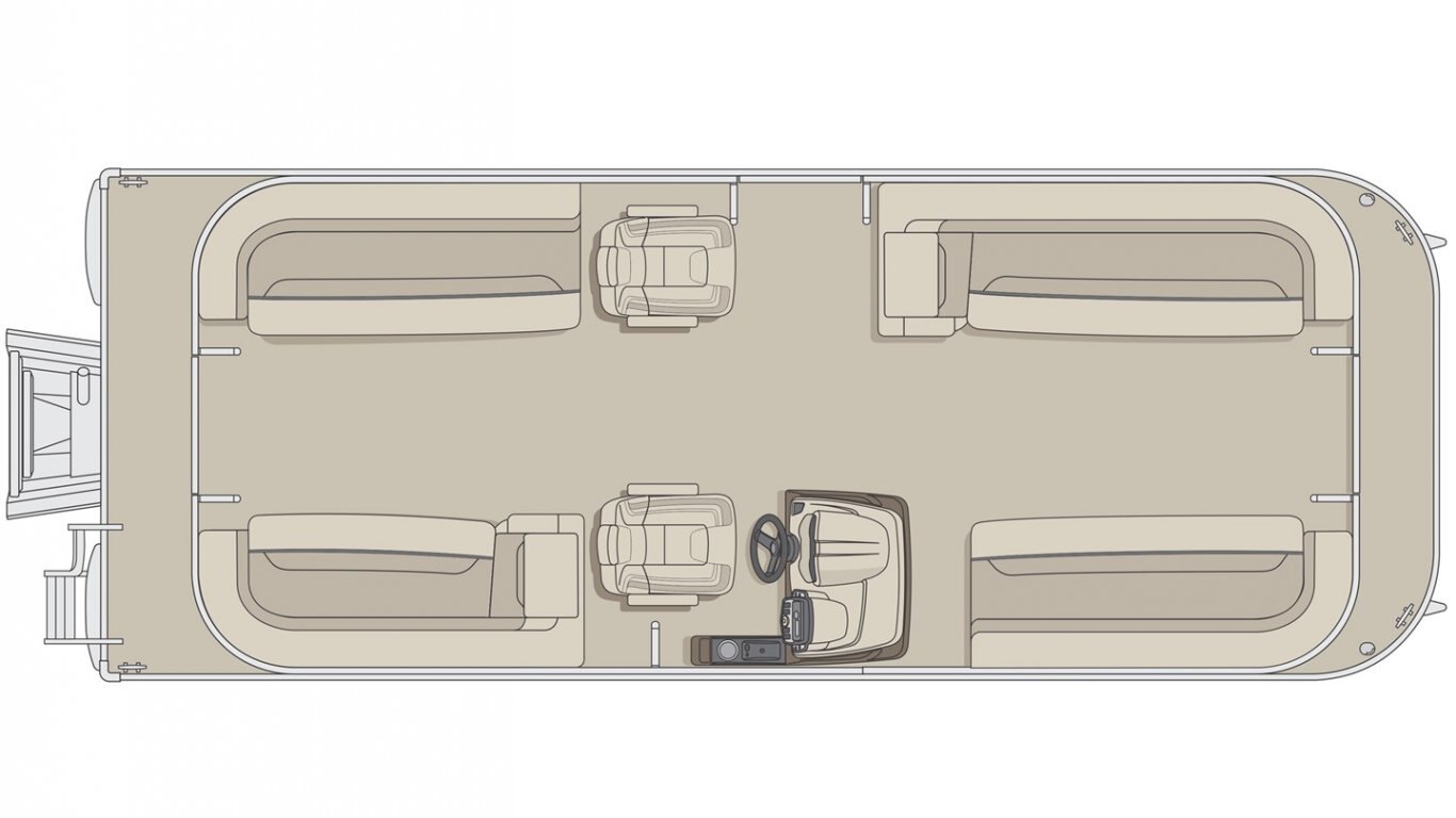 5052-H36 marine grade aluminum alloy NMMA & Transport Canada certified 2 ½" heavy-duty extruded Z-aluminum cross channels 1 1/4" anodized aluminum rails Sealed pontoon bulkheads with top mounted air plug (25") V-shaped aluminum engine pod Pressure-treated wood deck covered with marine grade carpet Extruded aluminum full-length pontoon keels Extruded aluminum full-length pontoon skirting Stern molded corners Walk-thru rear gate with lift and lock hinges Walk-thru bow gate with lift and lock hinges Port side gate with lift and lock hinges (24'') Rear swim platform Stainless steel bow eye 4- 6" chromed deck cleats