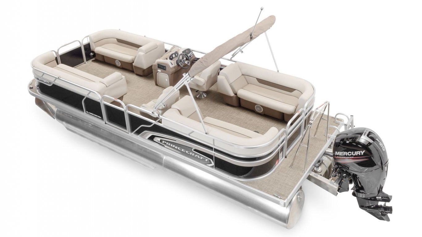 If you are looking for a top quality, affordable pontoon boat, with a lot of space to accommodate up to 12 people and that will let you practice all your favorite water sports, look no further than this Vectra 23 XT. With chaise lounges, a radio, a 12 volt outlet, a swim platform, and much more, you will appreciate the simplicity and practicality of this. This 23’-6’’ pontoon boat can accommodate an engine ranging from 40 to 115 HP, even 175 HP with the optional Sport Configuration.