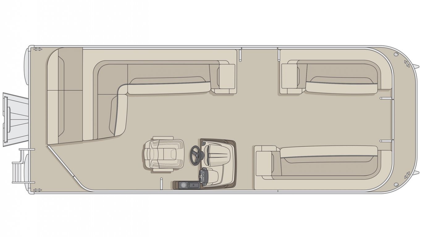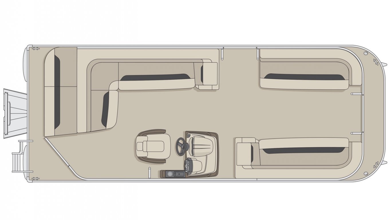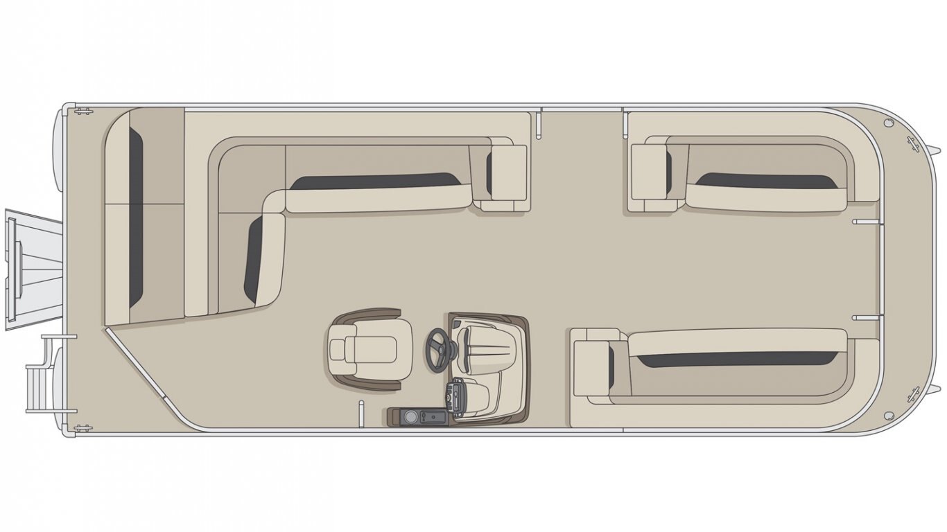 5052-H36 marine grade aluminum alloy NMMA & Transport Canada certified 2 ½" heavy-duty extruded Z-aluminum cross channels 1 1/4" anodized aluminum rails Sealed pontoon bulkheads with top mounted air plug (25") V-shaped aluminum engine pod Pressure-treated wood deck covered with marine grade carpet Extruded aluminum full-length pontoon keels Extruded aluminum full-length pontoon skirting Stern molded corners Rear padded sundeck Walk-thru rear gate with lift and lock hinges Walk-thru bow gate with lift and lock hinges Port side gate with lift and lock hinges (24'') Rear swim platform Stainless steel bow eye 4- 6" chromed deck cleats