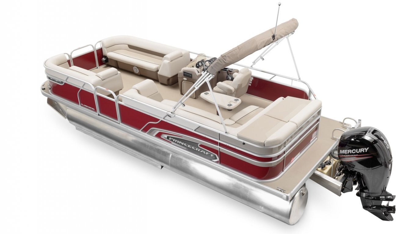 If you are looking for a top quality, affordable pontoon boat, with a lot of space to accommodate up to 12 people and that will let you practice all your favorite water sports, look no further than this Vectra 23. With chaise lounges, a sundeck, a radio, a 12 volt outlet, a swim platform, and much more, you will appreciate the simplicity and practicality of this. This 23’-6’’ pontoon boat can accommodate an engine ranging from 40 to 115 HP, even 175 HP with the optional Sport Configuration.