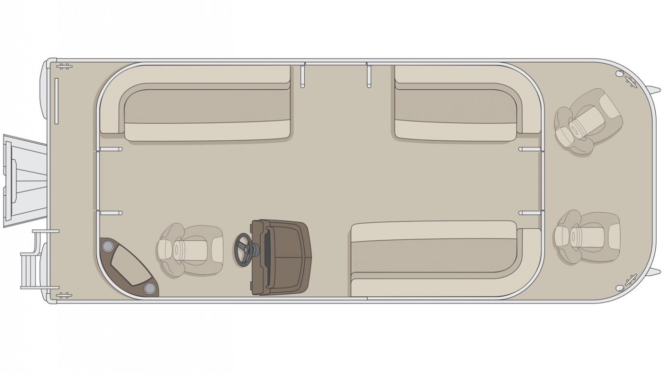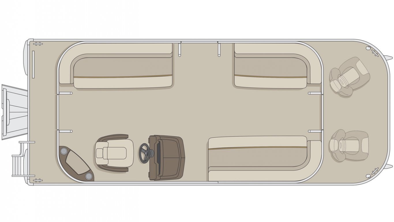 5052-H36 marine grade aluminum alloy NMMA & Transport Canada certified 2 ½" heavy-duty extruded Z-aluminum cross channels 1 1/4" anodized aluminum rails Sealed pontoon bulkheads with top mounted air plug (23") V-shaped aluminum engine pod Pressure-treated wood deck covered with marine grade carpet Extruded aluminum full-length pontoon keels Extruded aluminum full-length pontoon skirting Stern molded corners Walk-thru rear gate with lift and lock hinges Walk-thru bow gate with lift and lock hinges Port side gate with lift and lock hinges (24'') Rear swim platform Stainless steel bow eye 4- 6" chromed deck cleats
