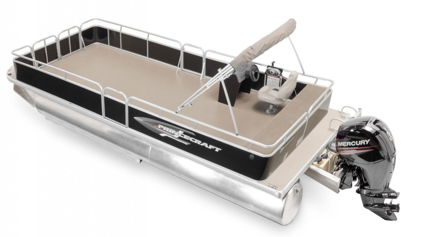 5052-H36 marine grade aluminum alloy NMMA & Transport Canada certified 2 ½" heavy-duty extruded Z-aluminum cross channels 1 1/4" anodized aluminum rails Sealed pontoon bulkheads with top mounted air plug (25") V-shaped aluminum engine pod Pressure-treated wood deck covered with marine grade vinyl Extruded aluminum full-length pontoon keels Extruded aluminum full-length pontoon skirting Stern molded corners Wide walk-thru double bow gate and lock hinges (52'') Starboard side gate with lift and lock hinges (24'') Port side gate with lift and lock hinges (24'') Stainless steel bow eye 4- 6" chromed deck cleats
