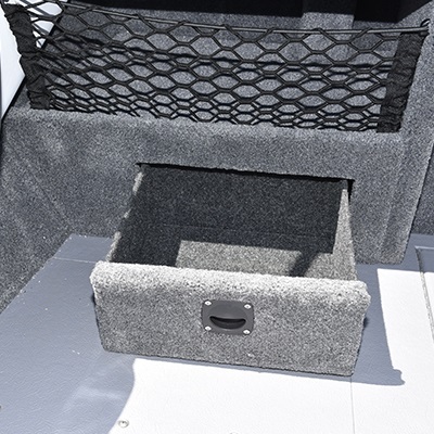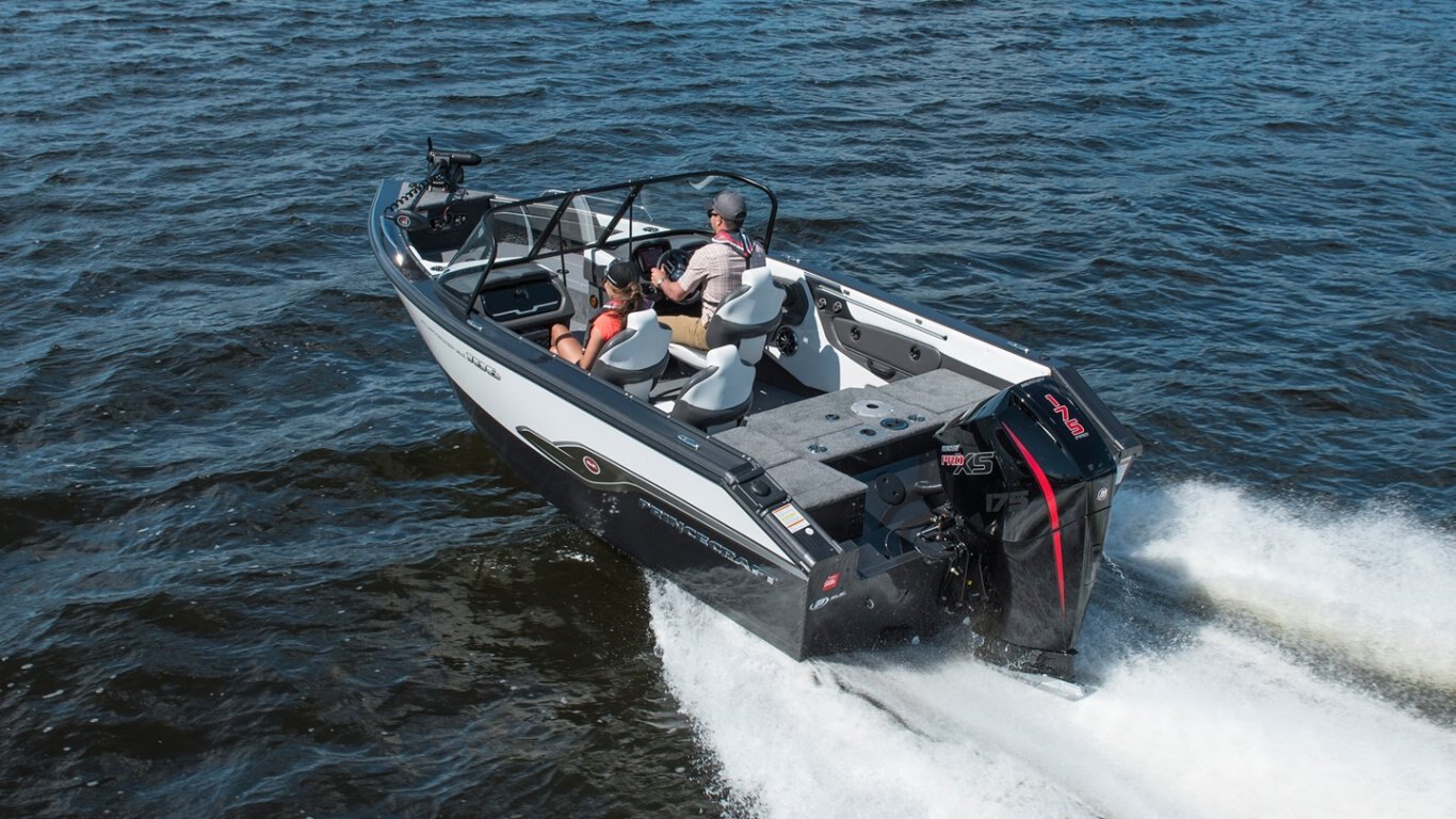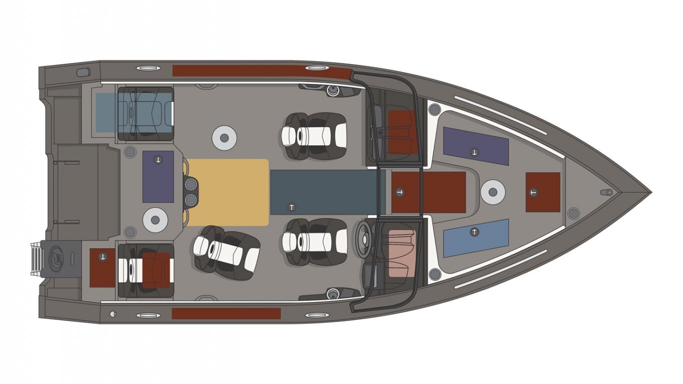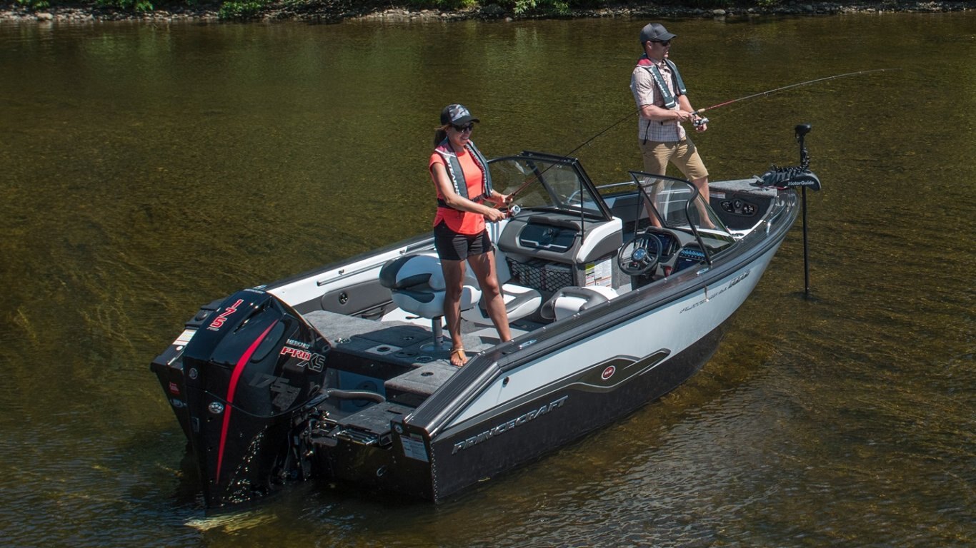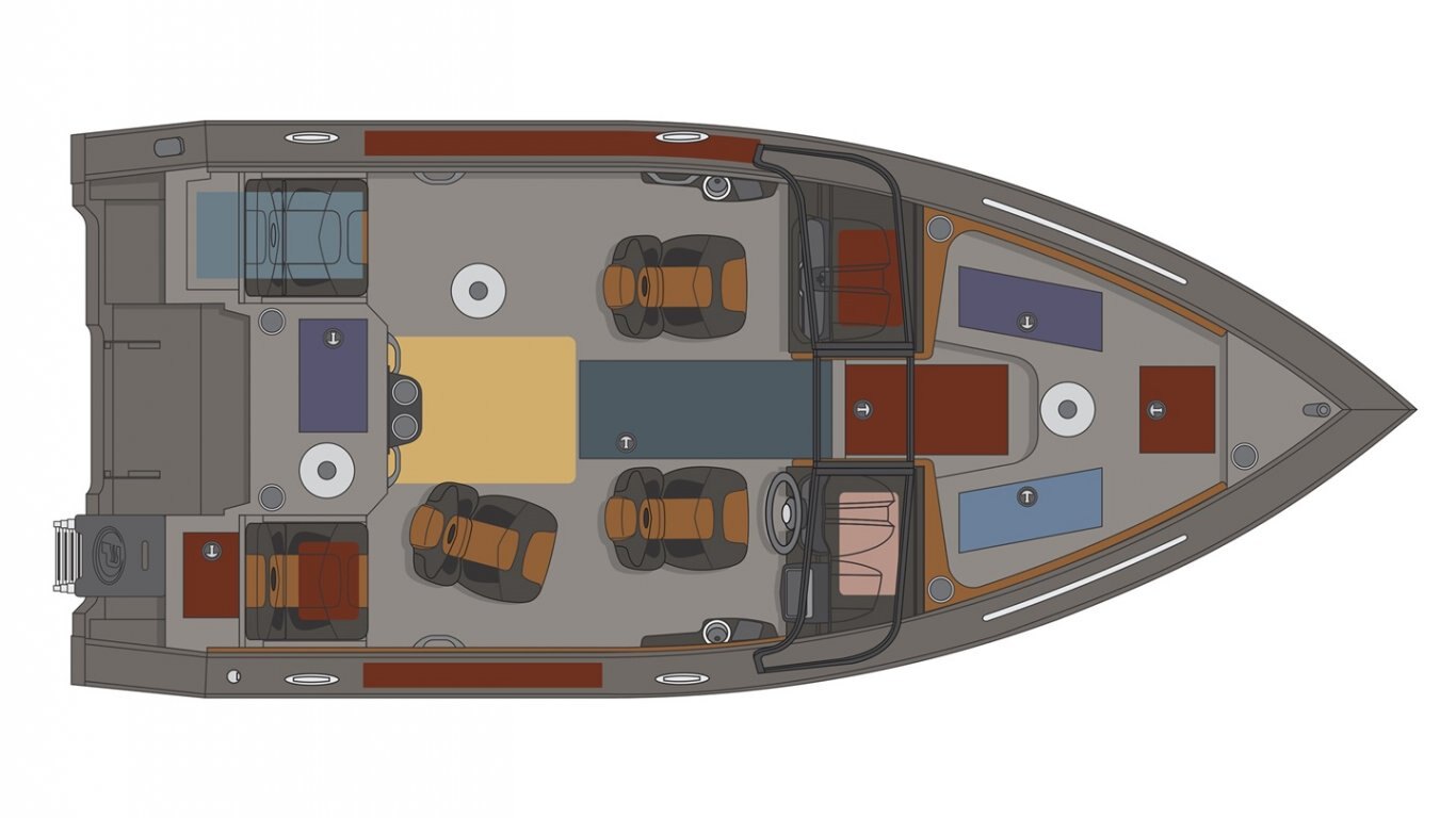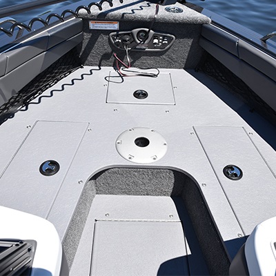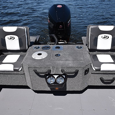Functionality, comfort and beauty is what you will find in the 18’-6’’ fishboat. With bow and aft raised casting platforms, livewells, plenty of storage, rear fold-down jump seats, and a pop-up privacy enclosure, this Platinum SE boat has everything you need to spend the best possible time on the water. This boat can handle an outboard engine ranging from 150 to 175 HP and 7 people (8 in the USA).