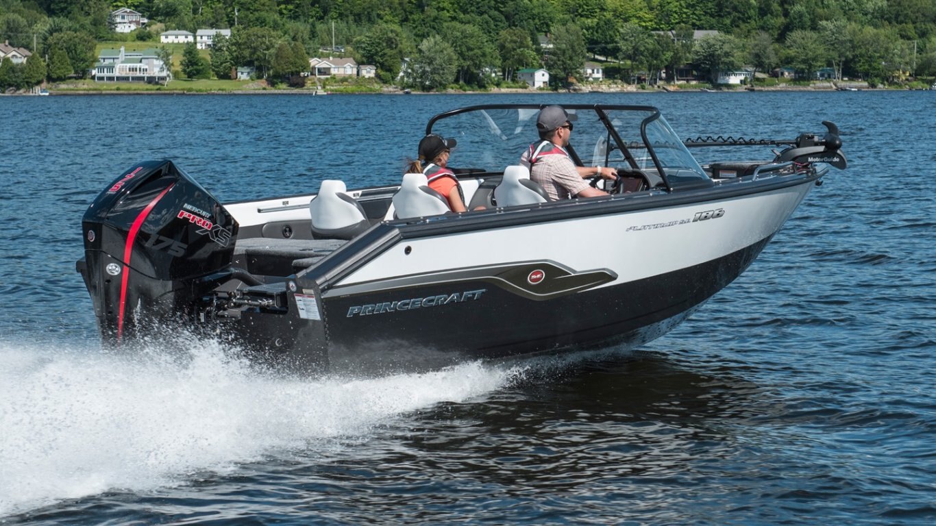 High gloss exterior High Solids urethane paint including decal package and dome Princecraft logo