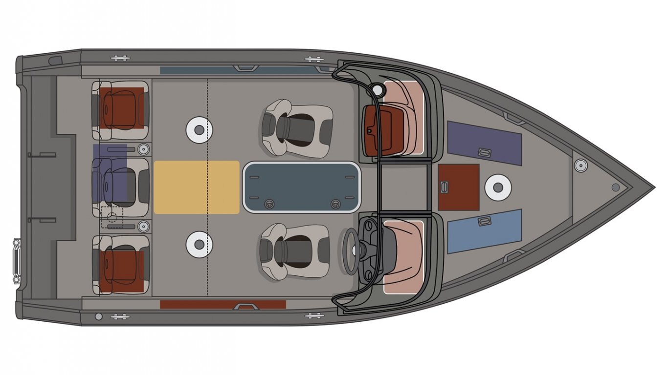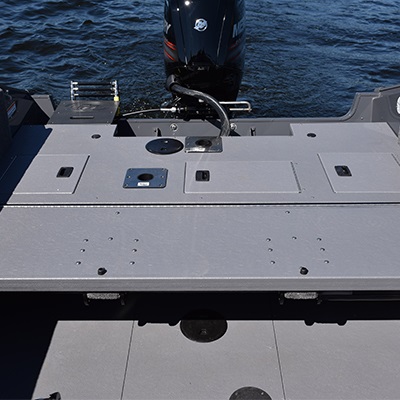 5052-H36 marine grade aluminum alloy NMMA & Transport Canada certified High gloss exterior High Solids urethane paint and decal package Reverse chine hull design Deep self-draining splashwell Twin plating from bow to mid-ship Twin plating at the chine Rigging tube under flooring (console to bow) Rigging tube under flooring (stern to console) Stainless steel bow and stern eyes 4 chromed cleats BOW RAISED CASTING PLATFORM Deep cycle battery storage compartment Ice chest Electric-filled aerated livewell Seat mount floor base AFT RAISED CASTING PLATFORM Battery storage compartment Removable rear flip-up full-width bench seat Electric-filled aerated livewell Seat mount floor base Storage compartment