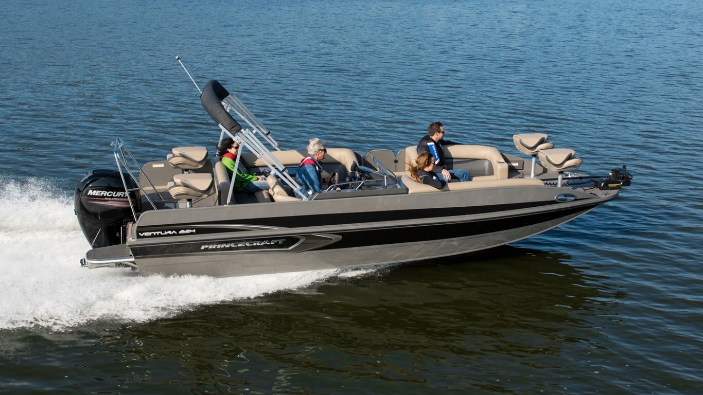 Stern boarding ladder Built-in floor fuel system 2 electric bilge pumps (500 gph) 3 battery trays Navigation lights Interior lighting Cup holders Holding handles