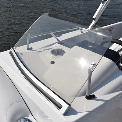 Fiberglass helm console with glove box Black thermoformed dash panel with lighted switches No-FeedBack steering system with dual cables Electric horn 200-watt AM/FM/Bluetooth Kicker KMC 10 Stereo with integrated USB plug and auxiliary input (1/8") in console 4 waterproof speakers 12V outlet Smoked windscreen Switches with breaker system protection