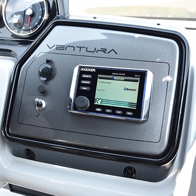 200-watts AM/FM/Bluetooth KMC 10 Stereo with integrated USB plug and auxiliary input (1/8") in console