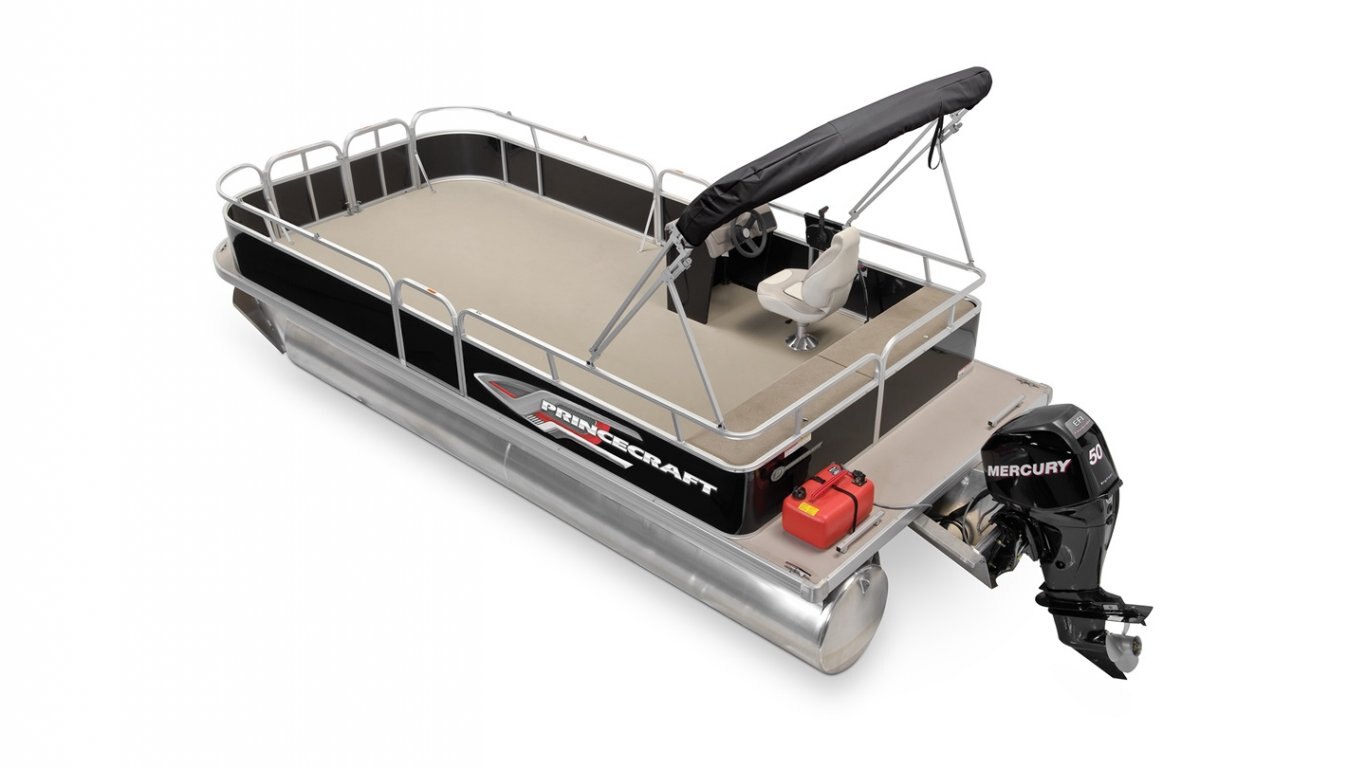 5052-H36 marine grade aluminum alloy NMMA & Transport Canada certified 2 ½" heavy-duty extruded Z-aluminum cross channels 1 1/4" anodized aluminum rails Sealed pontoon bulkheads with top mounted air plug (25") V-shaped aluminum engine pod Pressure-treated wood deck covered with marine grade vinyl Extruded aluminum full-length pontoon keels Extruded aluminum full-length pontoon skirting Stern molded corners Wide walk-thru double bow gate and lock hinges (52'') Starboard side gate with lift and lock hinges (24'') Port side gate with lift and lock hinges (24'') Stainless steel bow eye 4- 6" chromed deck cleats
