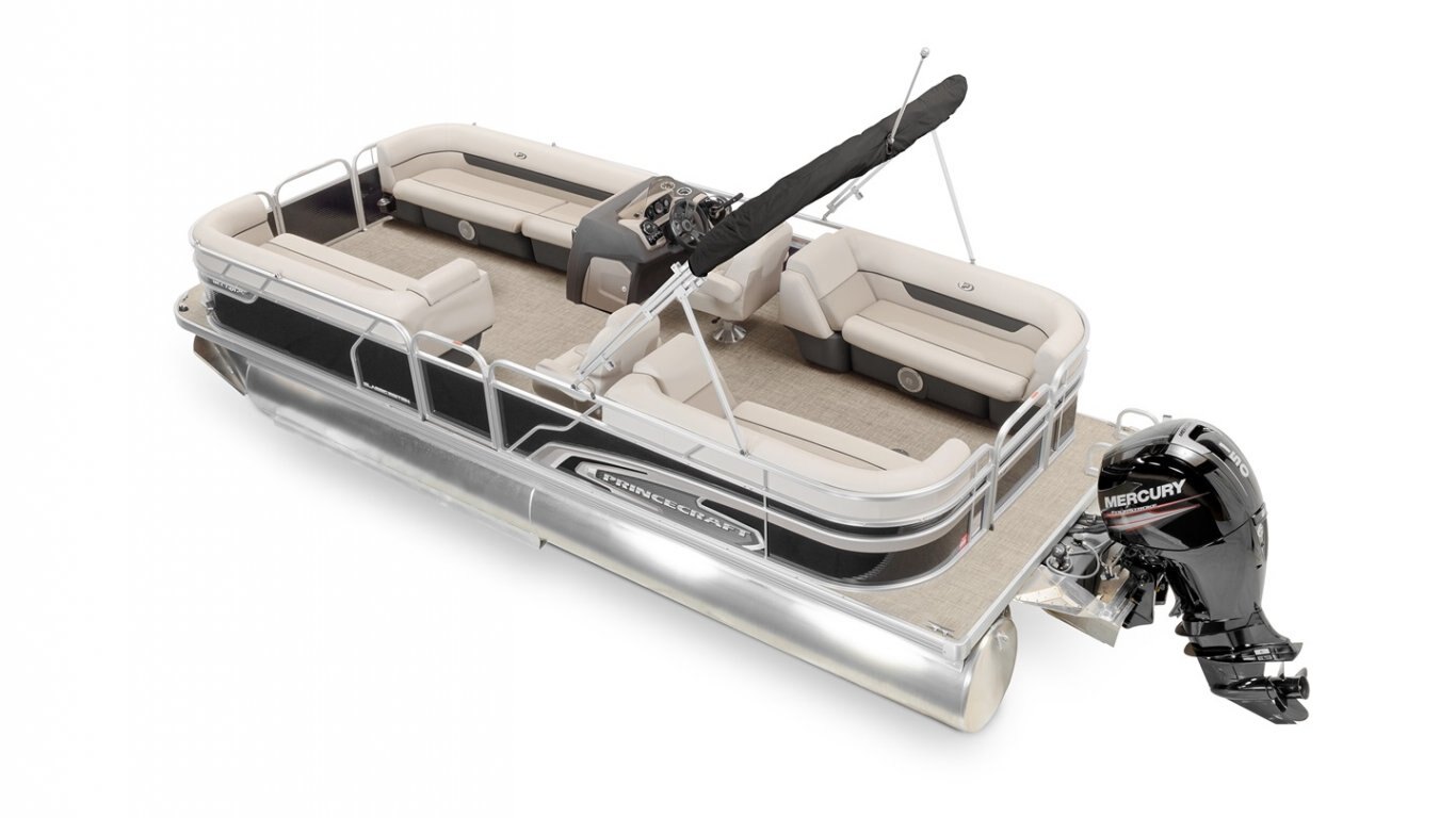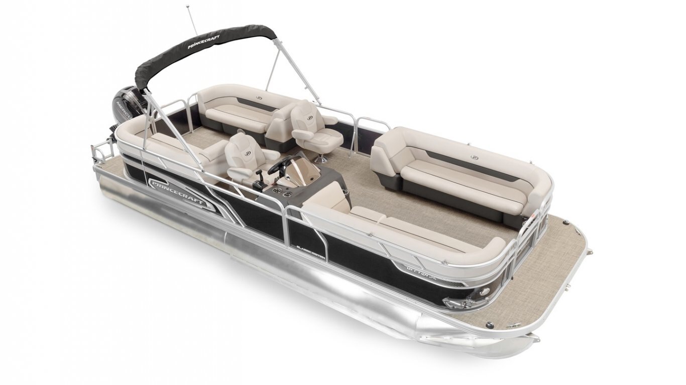 If you are looking for a top quality, affordable pontoon boat, with a lot of space to accommodate up to 12 people and that will let you practice all your favorite water sports, look no further than this Vectra 25 XT. With chaise lounges, a radio, a 12 volt outlet, a swim platform, and much more, you will appreciate the simplicity and practicality of this. This 25’-8’’ pontoon boat can accommodate an engine ranging from 40 to 115 HP, even 200 HP with the optional Sport Configuration.