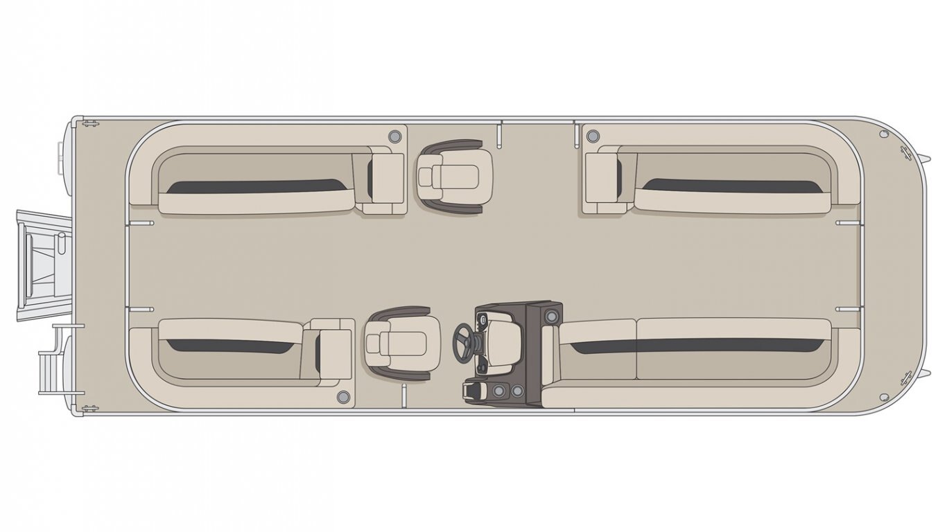 5052-H36 marine grade aluminum alloy NMMA & Transport Canada certified 2 ½" heavy-duty extruded Z-aluminum cross channels 1 1/4" anodized aluminum rails Sealed pontoon bulkheads with top mounted air plug (23") V-shaped aluminum engine pod Pressure-treated wood deck covered with marine grade carpet Extruded aluminum full-length pontoon keels Extruded aluminum full-length pontoon skirting Stern molded corners Walk-thru rear gate with lift and lock hinges Walk-thru bow gate with lift and lock hinges Port side gate with lift and lock hinges (24'') Rear swim platform Stainless steel bow eye 4- 6" chromed deck cleats