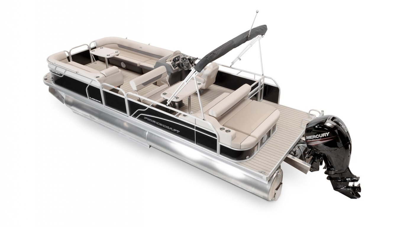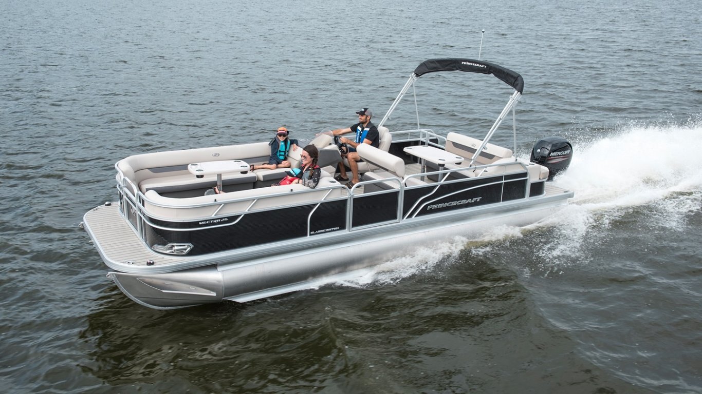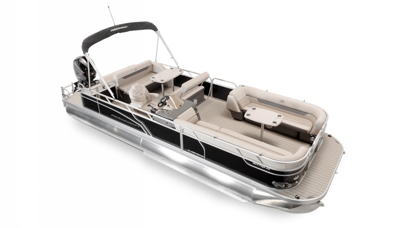If you are looking for a top quality, affordable pontoon boat, with a lot of space to accommodate up to 12 people and that will let you practice all your favorite water sports, look no further than this Vectra 25 RL. With chaise lounges, a large sundeck, a radio, a 12 volt outlet, a swim platform, a large table and captain passenger seat, and much more, you will appreciate the simplicity and practicality of this. This 25’-8’’ pontoon boat can accommodate an engine ranging from 40 to 115 HP, even 200 HP with the optional Sport Configuration.