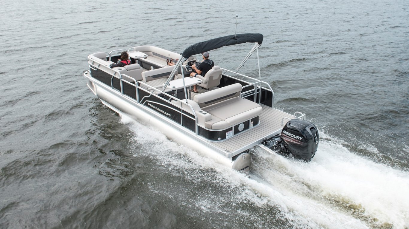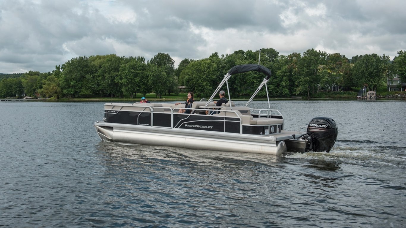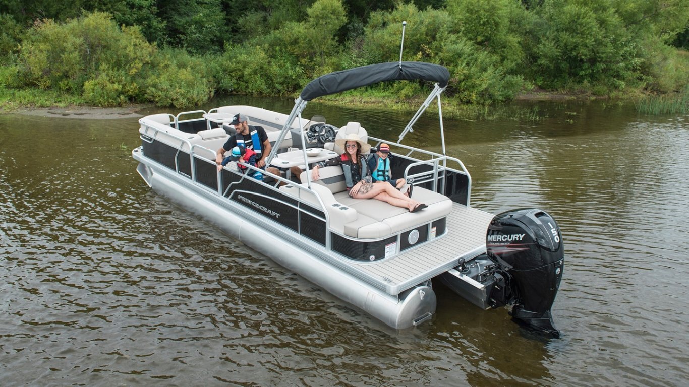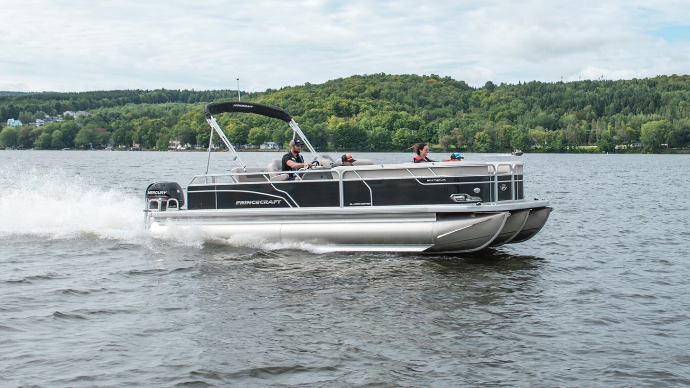 If you are looking for a top quality, affordable pontoon boat, with a lot of space to accommodate up to 12 people and that will let you practice all your favorite water sports, look no further than this Vectra 25 RL. With chaise lounges, a large sundeck, a radio, a 12 volt outlet, a swim platform, a large table and captain passenger seat, and much more, you will appreciate the simplicity and practicality of this. This 25’-8’’ pontoon boat can accommodate an engine ranging from 40 to 115 HP, even 200 HP with the optional Sport Configuration.