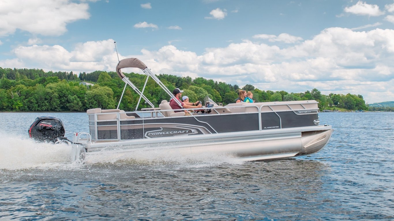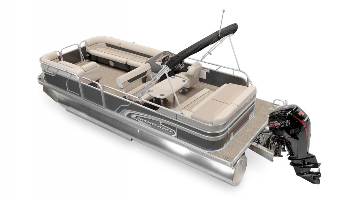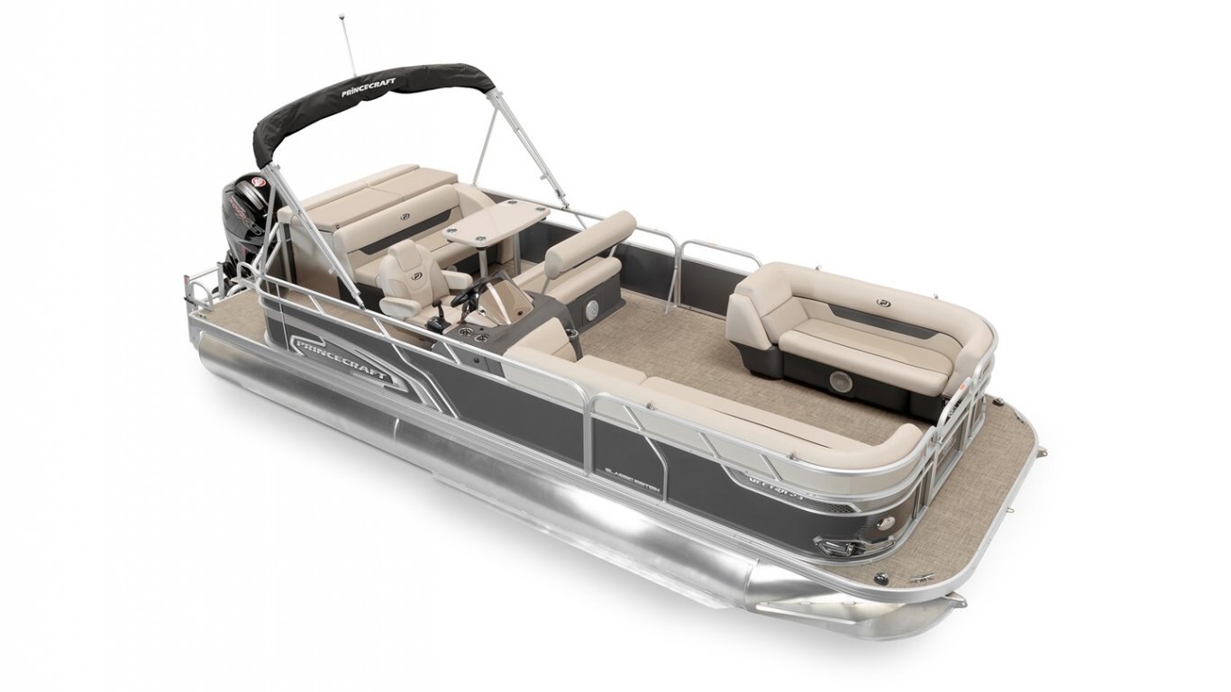 If you are looking for a top quality, affordable pontoon boat, with a lot of space to accommodate up to 12 people and that will let you practice all your favorite water sports, look no further than this Vectra 23 LT. With a chaise lounge, a sundeck, a radio, a 12 volt outlet, a swim platform, a table and a 2-position seat with cooler, and much more, you will appreciate the simplicity and practicality of this. This 23’-6’’ pontoon boat can accommodate an engine ranging from 40 to 115 HP, even 175 HP with the optional Sport Configuration.