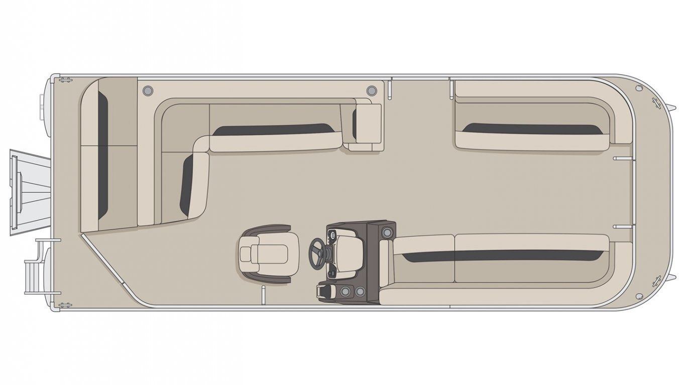 5052-H36 marine grade aluminum alloy NMMA & Transport Canada certified 2 ½" heavy-duty extruded Z-aluminum cross channels 1 1/4" anodized aluminum rails Sealed pontoon bulkheads with top mounted air plug (25") V-shaped aluminum engine pod Pressure-treated wood deck covered with marine grade carpet Extruded aluminum full-length pontoon keels Extruded aluminum full-length pontoon skirting Stern molded corners Rear padded sundeck Walk-thru rear gate with lift and lock hinges Walk-thru bow gate with lift and lock hinges Port side gate with lift and lock hinges (24'') Rear swim platform Stainless steel bow eye 4- 6" chromed deck cleats