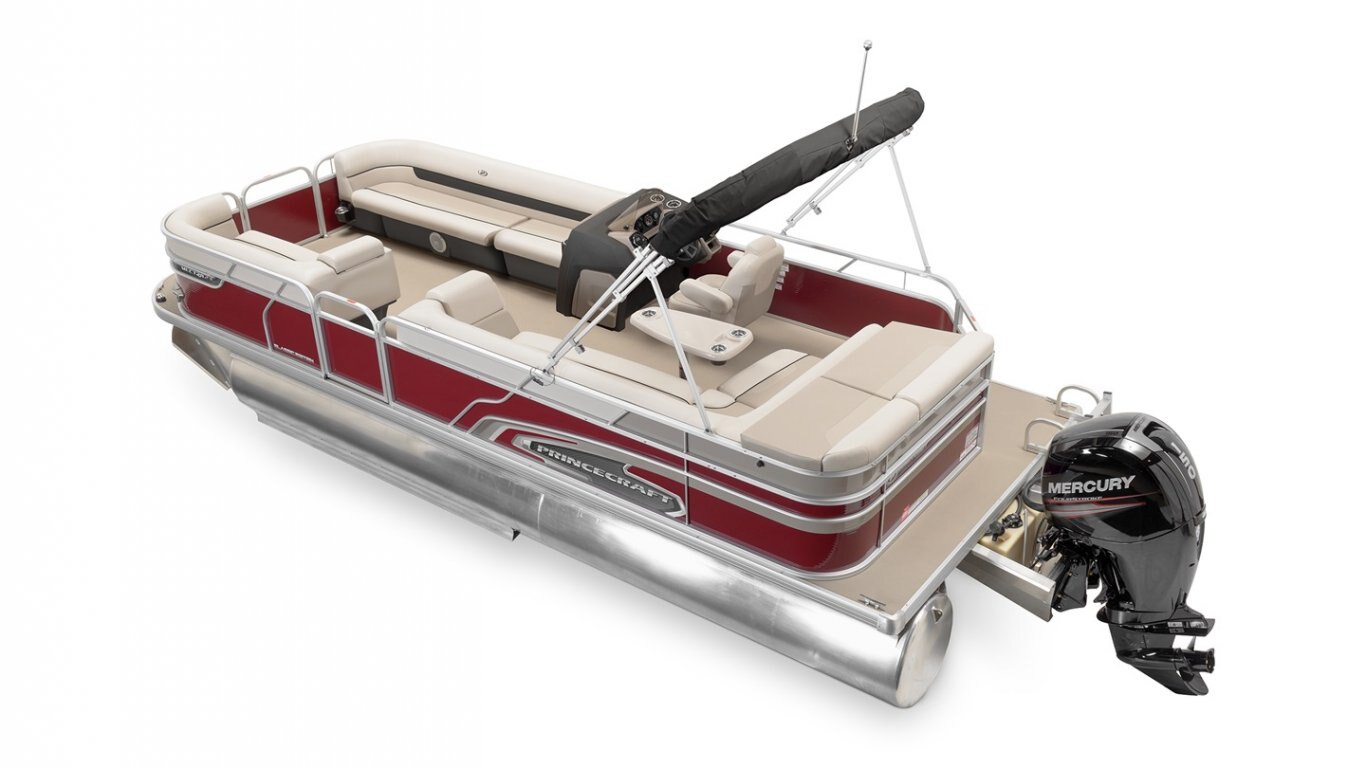 If you are looking for a top quality, affordable pontoon boat, with a lot of space to accommodate up to 12 people and that will let you practice all your favorite water sports, look no further than this Vectra 23. With chaise lounges, a sundeck, a radio, a 12 volt outlet, a swim platform, and much more, you will appreciate the simplicity and practicality of this. This 23’-6’’ pontoon boat can accommodate an engine ranging from 40 to 115 HP, even 175 HP with the optional Sport Configuration.