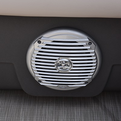 Rotomolded helm console with acrylic top Molded dash panel with black inserts and lighted switches 160-watt AM/FM/Bluetooth Jensen Stereo with integrated auxiliary input (1/8") in console 4 waterproof speakers ( 6 ½" ) Electric horn 12V outlet Quick release smoked windscreen Push on/off console courtesy light