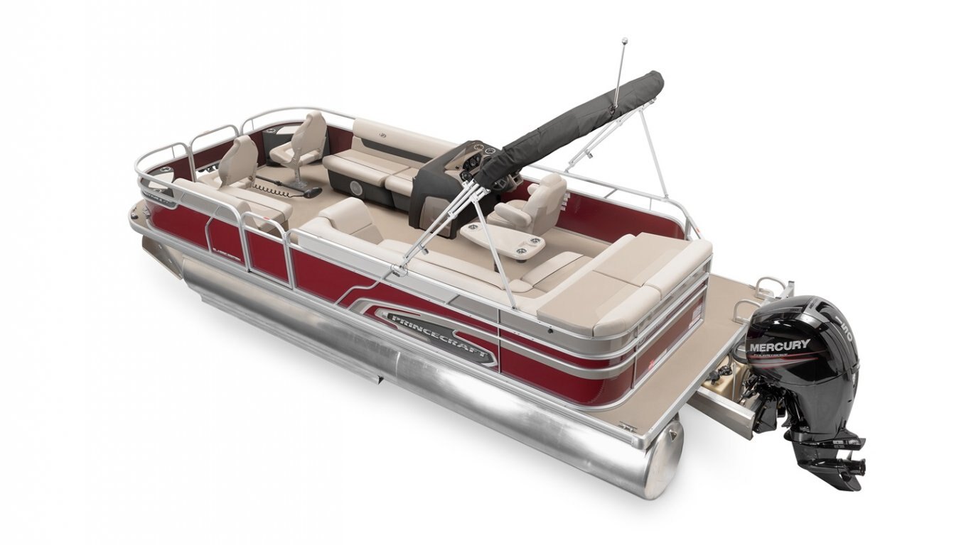 5052-H36 marine grade aluminum alloy NMMA & Transport Canada certified 2 ½" heavy-duty extruded Z-aluminum cross channels 1 1/4" anodized aluminum rails Sealed pontoon bulkheads with top mounted air plug (25") V-shaped aluminum engine pod Pressure-treated wood deck covered with marine grade carpet Extruded aluminum full-length pontoon keels Extruded aluminum full-length pontoon skirting Stern molded corners Rear padded sundeck Walk-thru rear gate with lift and lock hinges Walk-thru bow gate with lift and lock hinges Port side gate with lift and lock hinges (24'') Stainless steel bow eye 2- 6" stainless steel deck cleats 2 stainless steel recessed cleats Rear swim platform