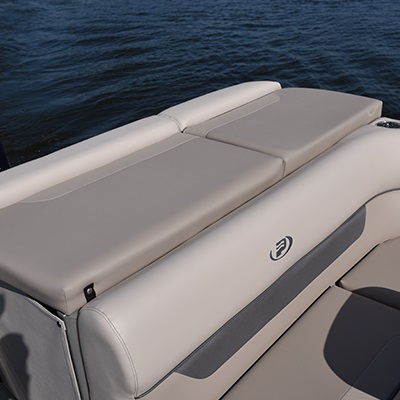Plush and heavy weight upholstery Roto-Cast furniture bases and backs Swivel captain's chair 2 swivel folding seats 2 bow storage modules Storage under all lounges