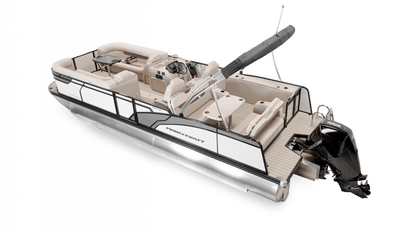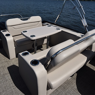 With the capacity to carry up to 13 people, you will love the styling and comfort of this 25’-8’’ Quorum 25 RL. While you can gear it with a 300 HP engine (with the optional Performance Configuration) to enjoy all your water sports, you can also rig this pontoon with a 60 HP engine, perfect for smaller lakes or to simply relax on the water. With such features as rear swim platform, a radio, and the RL design (2 seat modules with 3-position adjustable backrest, a large snack table, and storage under all the seating area), and a lot more, you will most definitely not find anything comparable.