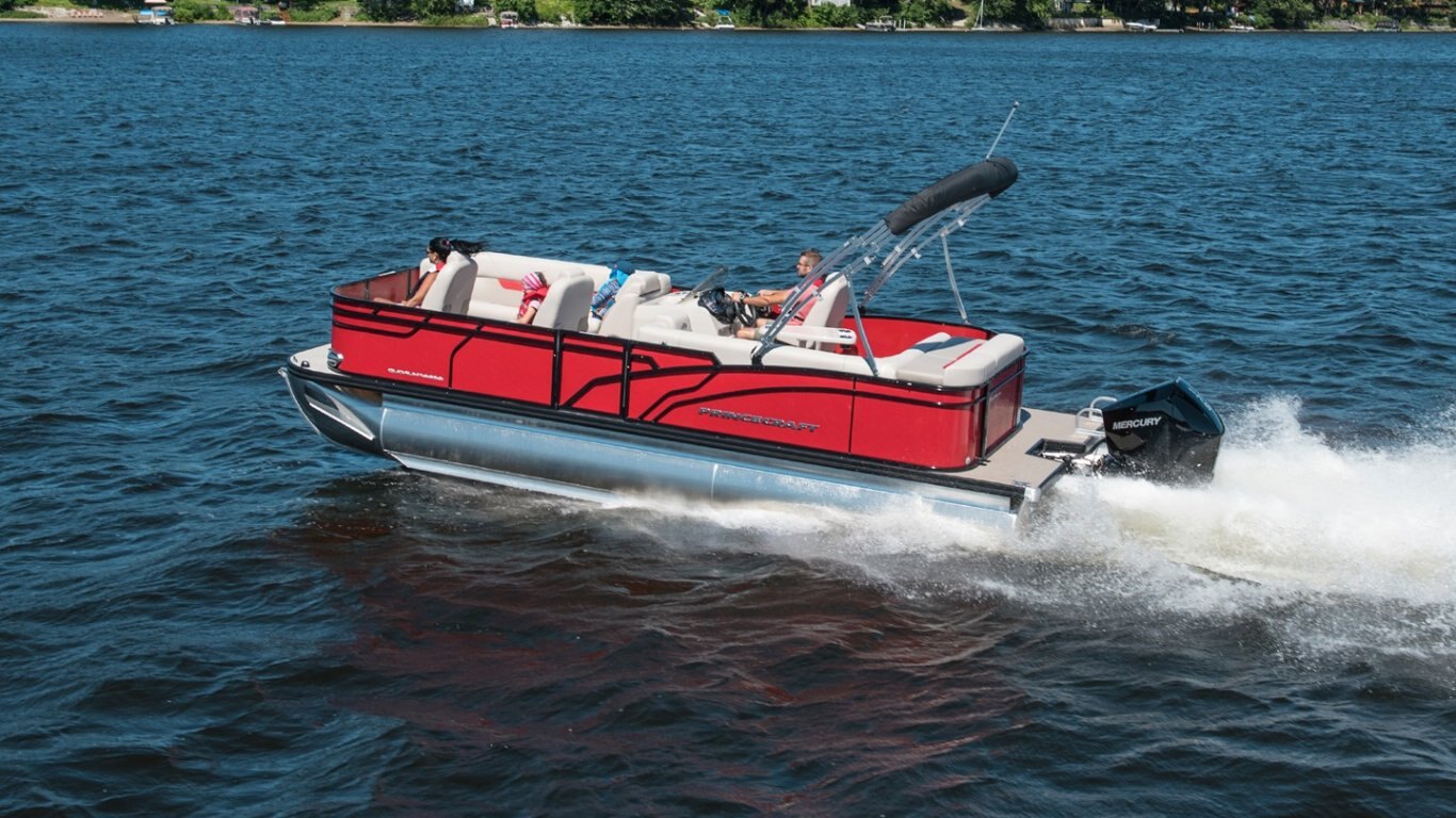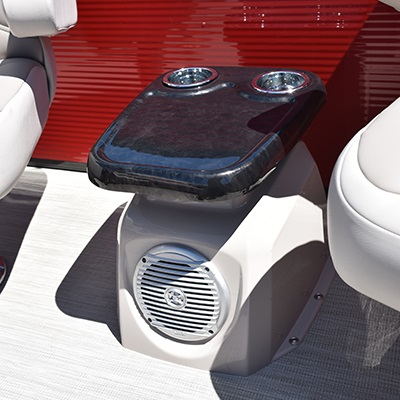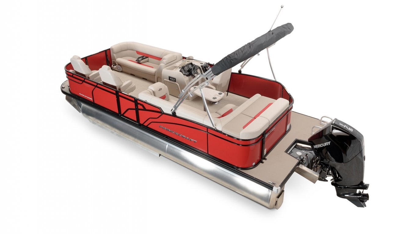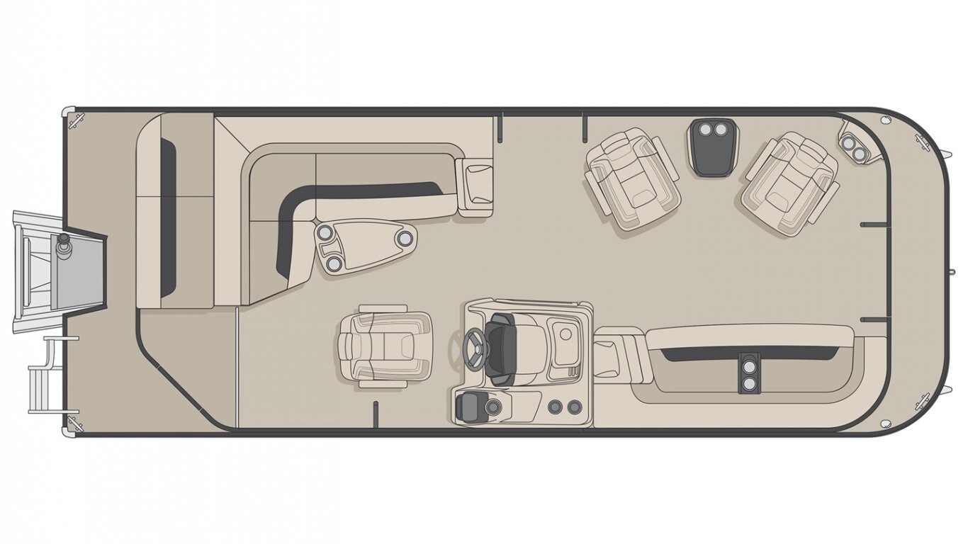 With the capacity to carry up to 11 people, you will love the styling and comfort of this 23’-8’’ Quorum 23 SS. While you can gear it with a 250 HP engine (with the optional Performance Configuration) to enjoy all your water sports, you can also rig this pontoon with a 40 HP engine, perfect for smaller lakes or to simply relax on the water. With such features as rear swim platform, a rear padded sundeck, a radio, a chaise lounge, 2 captain chairs (with table unit and cup holders), and a lot more, you will most definitely not find anything comparable.