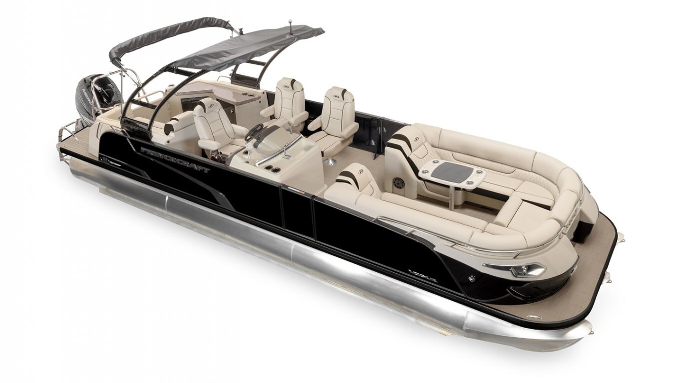 Helm console with galley unit including sink, faucet with electric pump and portable water tank Padded footrest with Princecraft logo Molded dash panel with black inserts and lighted switches Sport tilt steering mechanism SeaStar hydraulic steering system 200-watt AM/FM/Bluetooth Kicker KMC 10 Stereo with integrated USB plug and auxiliary input (1/8") in console 4 waterproof speakers ( 6 ½" ) Depth finder gauge with water temperature Electric horn 12V outlet Push on/off console courtesy light LED lighting under driver console Smoked windscreen