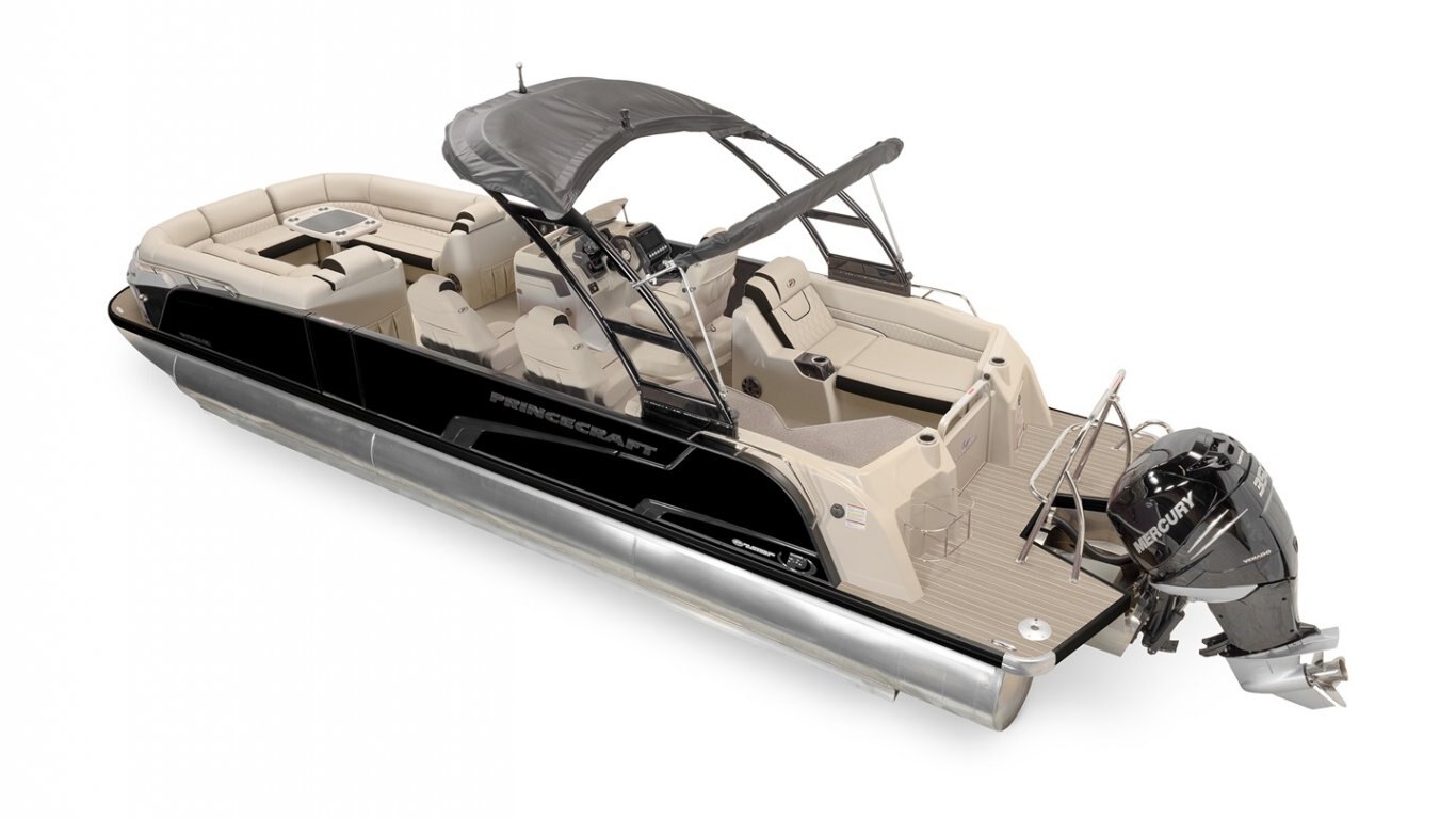5052-H36 marine grade aluminum alloy NMMA & Transport Canada certified 2 ½" heavy-duty extruded Z-aluminum cross channels APS style side panels Sealed pontoon bulkheads with top mounted air plug (25") V-shaped aluminum engine pod Pressure-treated wood deck covered with marine grade carpet Extruded aluminum full-length pontoon keels Extruded aluminum full-length pontoon skirting Stern molded corners Walk-thru rear gate with lift and lock hinges Walk-thru bow gate with lift and lock hinges Starboard side gate with lift and lock hinges (20'') Port side gate with lift and lock hinges (20'') Rear swim platform Bow fiberglass molded section with integrated LED lighting Stainless steel bow eye 4 stainless steel recessed cleats Performance Configuration: 3rd log, under-deck spray shield, lifting strakes, 49 U.S. gal. / 185 L gas tank, and 1 in-floor storage compartment