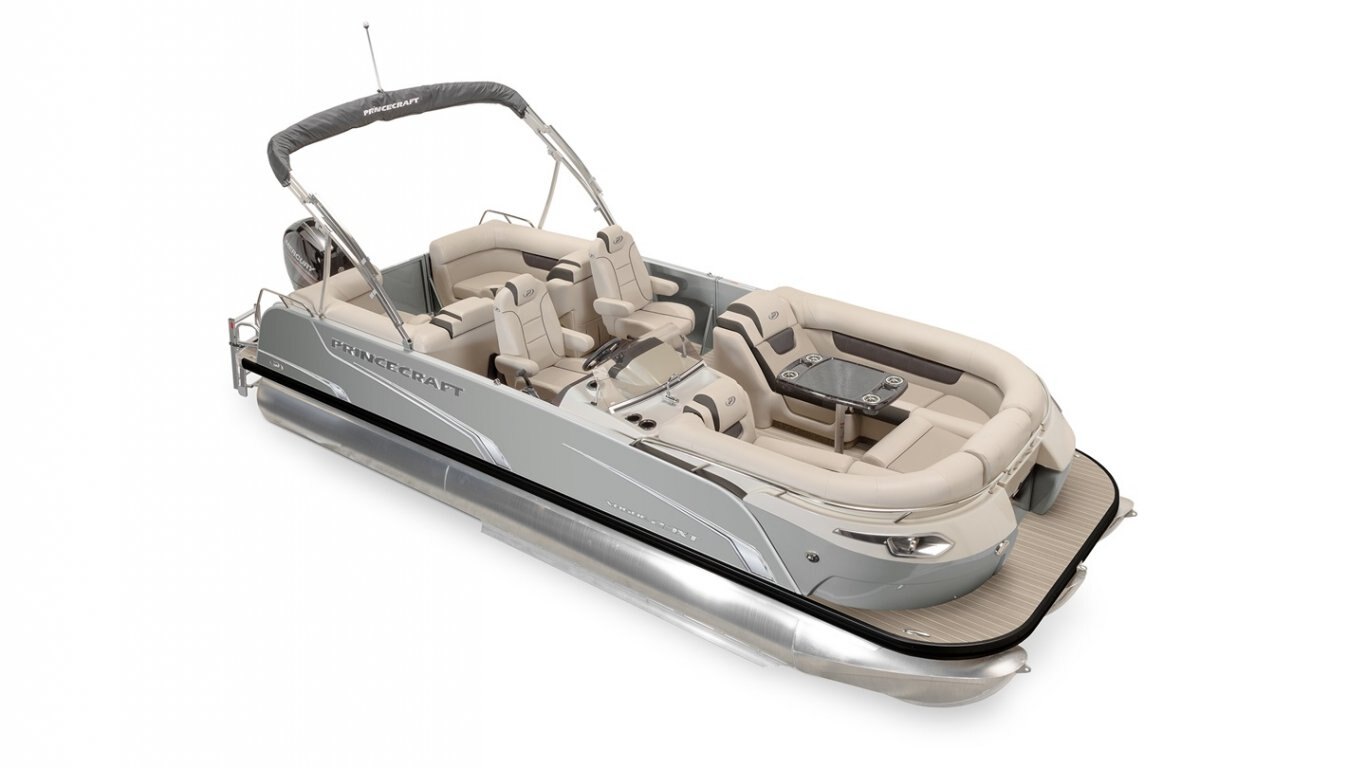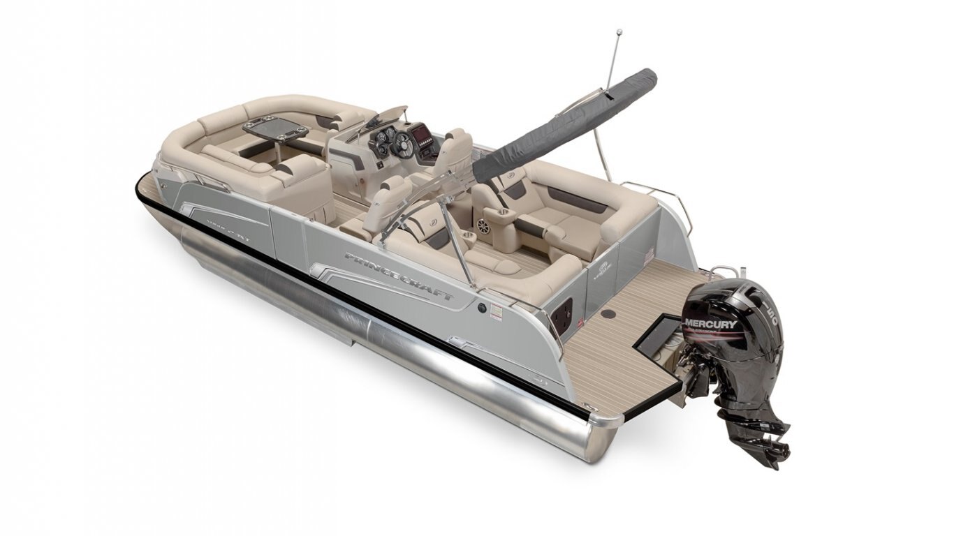 This 23’-11’’ pontoon features all the comfort and convenience you enjoy at home… and more. A galley unit with a sink and faucet, water tank (portable), rear swim platform, ultra-plush upholstery, chaise lounges, radio, and so much more. Have a party with up to 10 friends or enjoy your favorite water sports. Rig your pontoon with an engine up to 250 HP (with the optional Performance Configuration) and get ready for some serious fun!