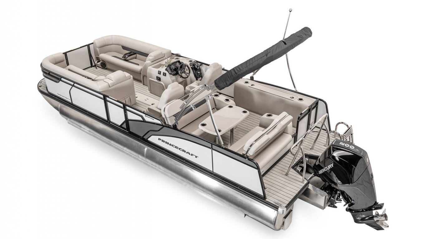 With the capacity to carry up to 13 people, you will love the styling and comfort of this 25’-8’’ Quorum 25 RL. While you can gear it with a 300 HP engine (with the optional Performance Configuration) to enjoy all your water sports, you can also rig this pontoon with a 60 HP engine, perfect for smaller lakes or to simply relax on the water. With such features as rear swim platform, a radio, and the RL design (2 seat modules with 3-position adjustable backrest, a large snack table, and storage under all the seating area), and a lot more, you will most definitely not find anything comparable.