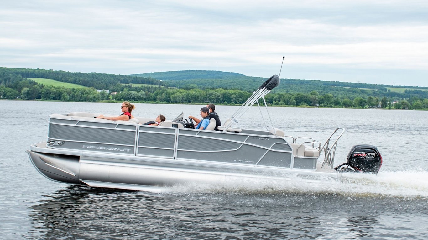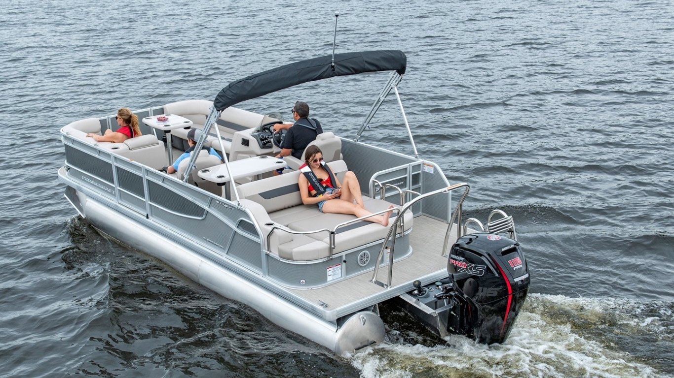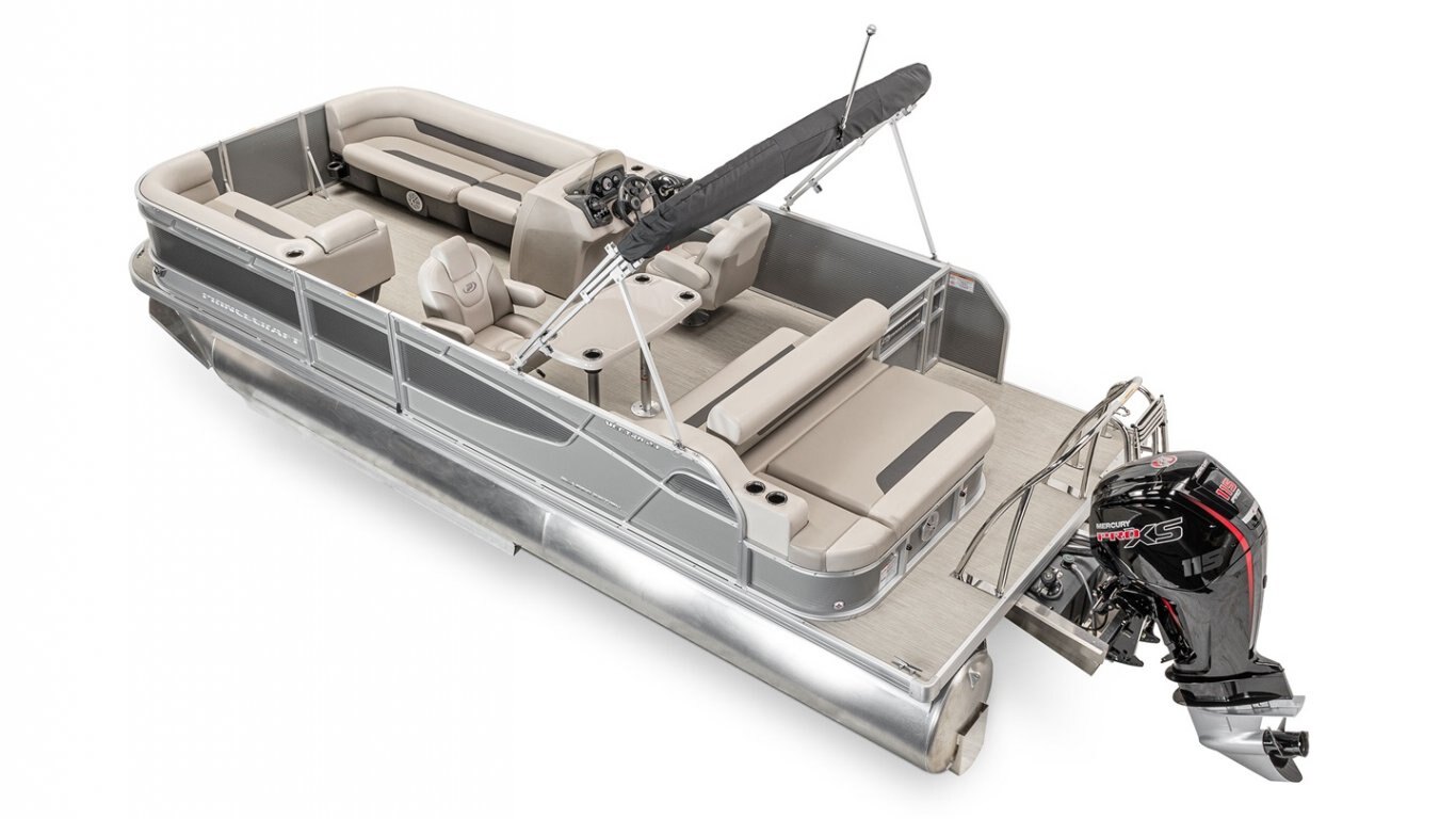 If you are looking for a top quality, affordable pontoon boat, with a lot of space to accommodate up to 12 people and that will let you practice all your favorite water sports, look no further than this Vectra 23 RL. With a chaise lounge, a large sundeck, a radio, a 12 volt outlet, a swim platform, a large table and captain passenger seat, and much more, you will appreciate the simplicity and practicality of this. This 23’-6’’ pontoon boat can accommodate an engine ranging from 40 to 115 HP, even 150 HP with the optional Speed or Sport Configurations.