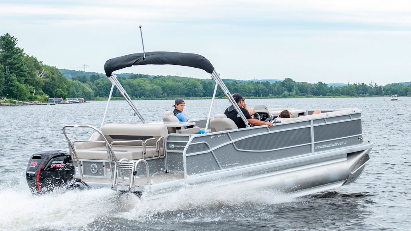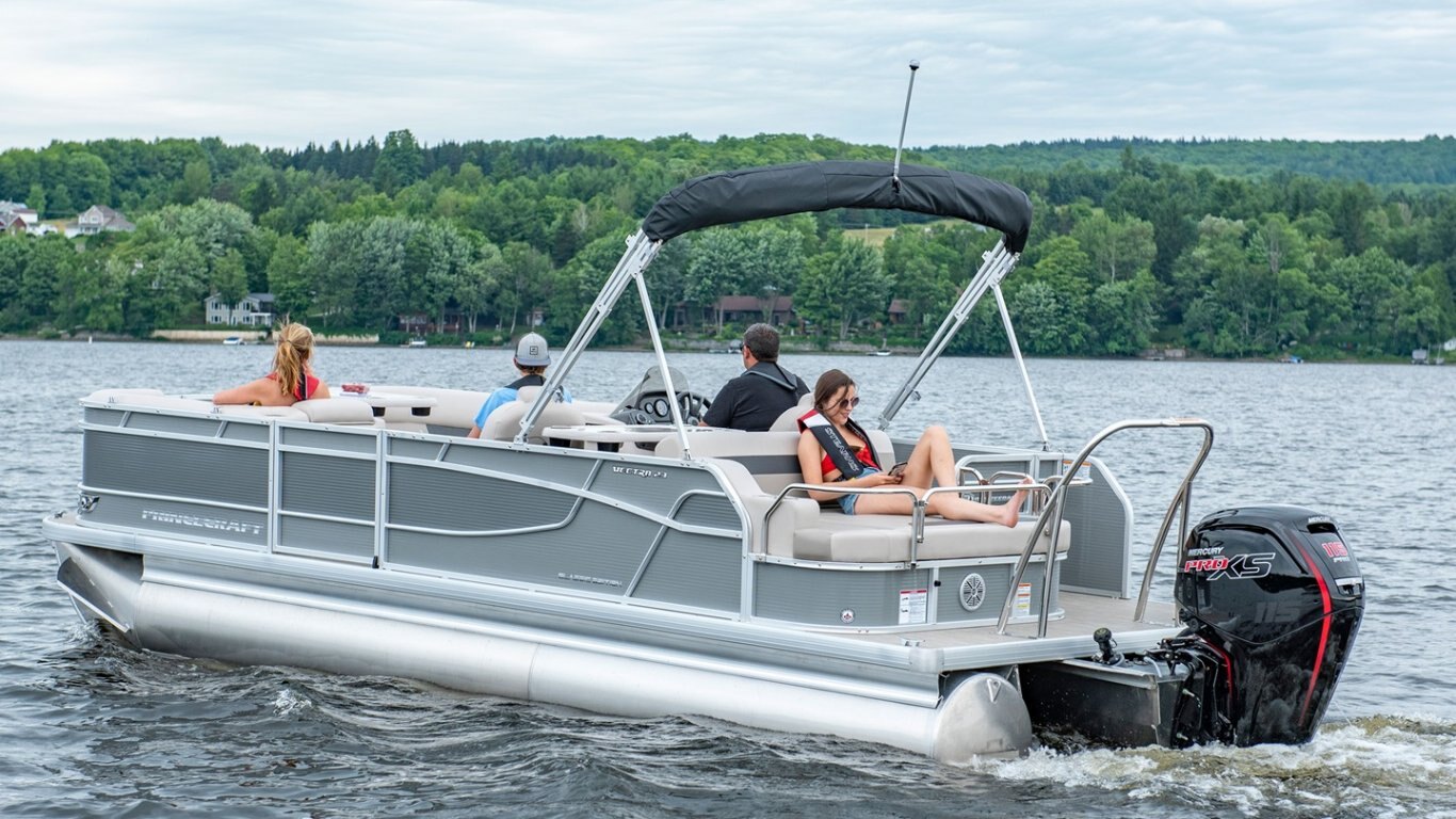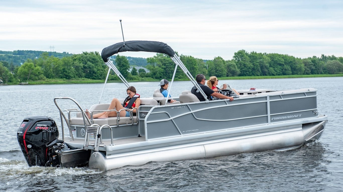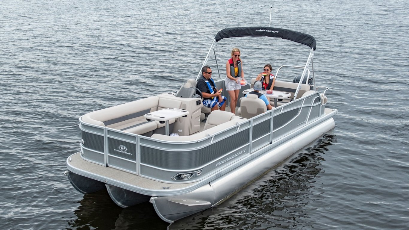 If you are looking for a top quality, affordable pontoon boat, with a lot of space to accommodate up to 12 people and that will let you practice all your favorite water sports, look no further than this Vectra 23 RL. With a chaise lounge, a large sundeck, a radio, a 12 volt outlet, a swim platform, a large table and captain passenger seat, and much more, you will appreciate the simplicity and practicality of this. This 23’-6’’ pontoon boat can accommodate an engine ranging from 40 to 115 HP, even 150 HP with the optional Speed or Sport Configurations.