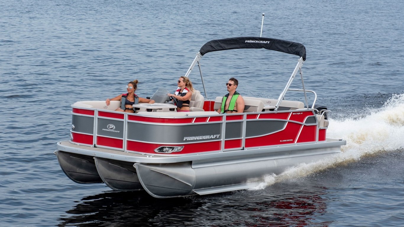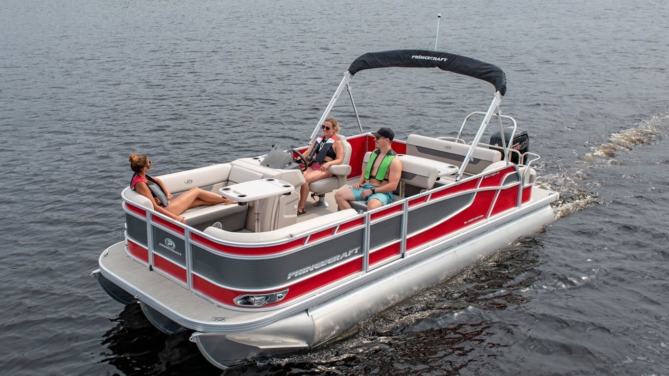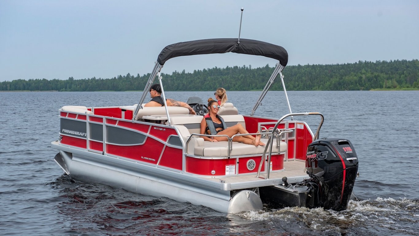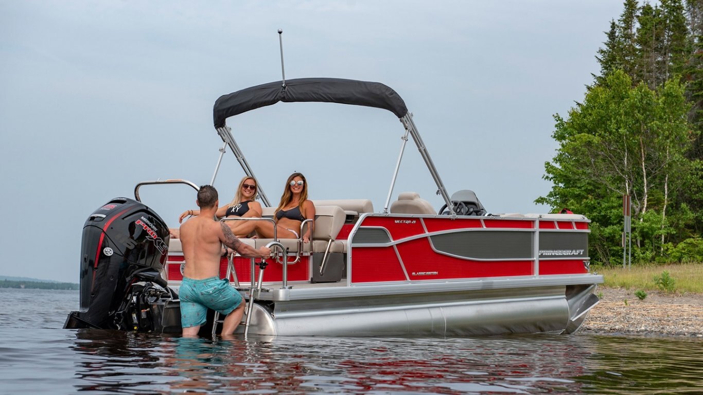 If you are looking for a top quality, affordable pontoon boat, with a lot of space to accommodate up to 10 people and that will let you practice all your favorite water sports, look no further than this Vectra 21 RL. With a chaise lounge, a large sundeck, a radio, a 12 volt outlet, a swim platform, a large table and captain passenger seat, and much more, you will appreciate the simplicity and practicality of this. This 21’-6’’ pontoon boat can accommodate an engine ranging from 40 to 115 HP, even 150 HP with the optional Sport Configuration.