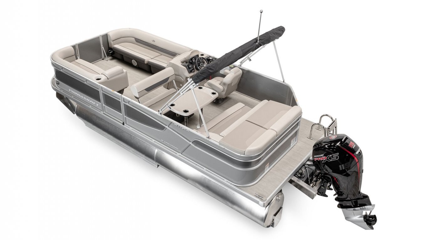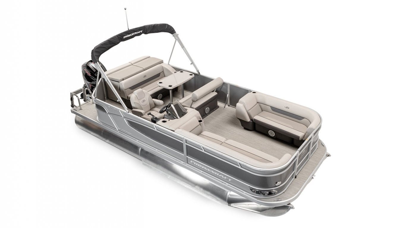 If you are looking for a top quality, affordable pontoon boat, with a lot of space to accommodate up to 10 people and that will let you practice all your favorite water sports, look no further than this Vectra 21 LT. With a chaise lounge, a sundeck, a radio, a 12 volt outlet, a swim platform, a table and a 2-position seat with cooler, and much more, you will appreciate the simplicity and practicality of this. This 21’-6’’ pontoon boat can accommodate an engine ranging from 40 to 115 HP, even 150 HP with the optional Sport Configuration.