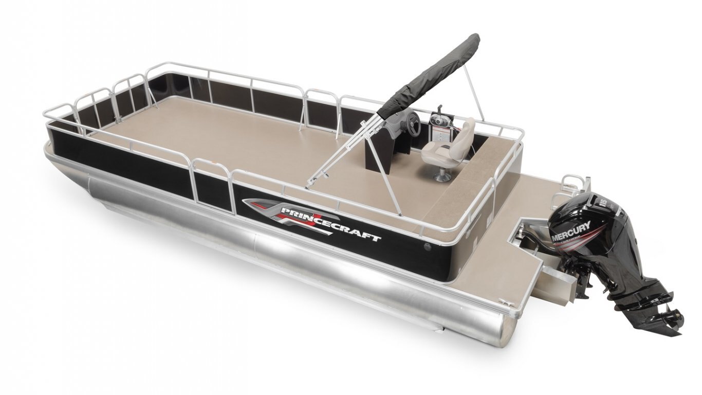 5052-H36 marine grade aluminum alloy NMMA & Transport Canada certified 2 ½" heavy-duty extruded Z-aluminum cross channels 1 1/4" anodized aluminum rails Sealed pontoon bulkheads with top mounted air plug (25") V-shaped aluminum engine pod Pressure-treated wood deck covered with marine grade vinyl Extruded aluminum full-length pontoon keels Extruded aluminum full-length pontoon skirting Stern molded corners Wide walk-thru double bow gate and lock hinges (52'') Starboard side gate with lift and lock hinges (24'') Port side gate with lift and lock hinges (24'') Stainless steel bow eye 4- 6" chromed deck cleats