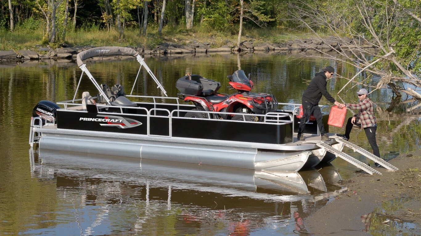 Back to basics- this is what is behind this Voyageur 25’-8’’ pontoon: integrated console, large passenger bench, and TONS of open storage. Accommodating 12 people with an engine ranging from 40 up to 115 HP, even 250 with the optional Performance Configuration, the Voyageur offers durability, impressive load capacity and will simplify all the projects you’ve ever dreamed of.