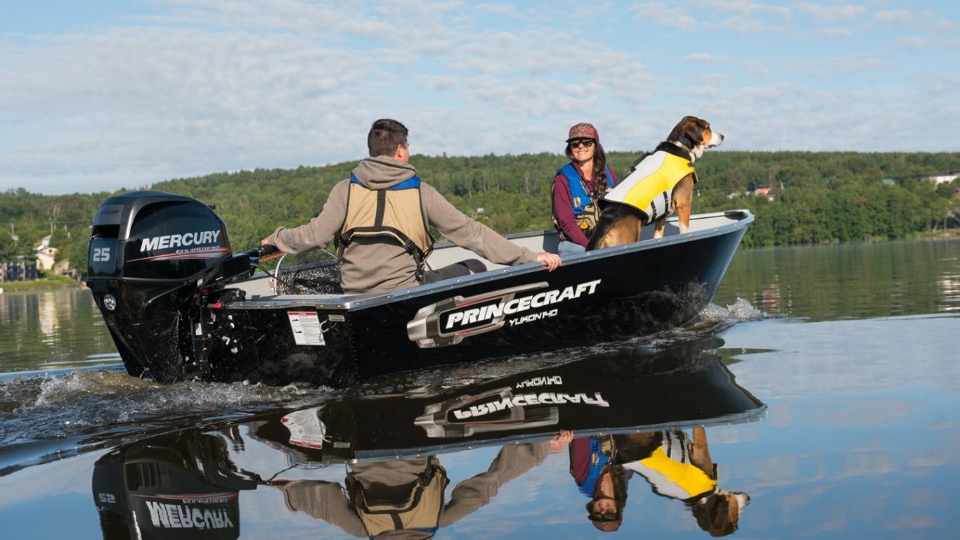 Enjoy your time on the water with this 14’-3’’ aluminum fishboat. Rated up to 25 HP, explore your lake and savor the moment with up to 3 people onboard (4 in the USA). Small enough to reach hard places but also big enough to feel safe on the water.